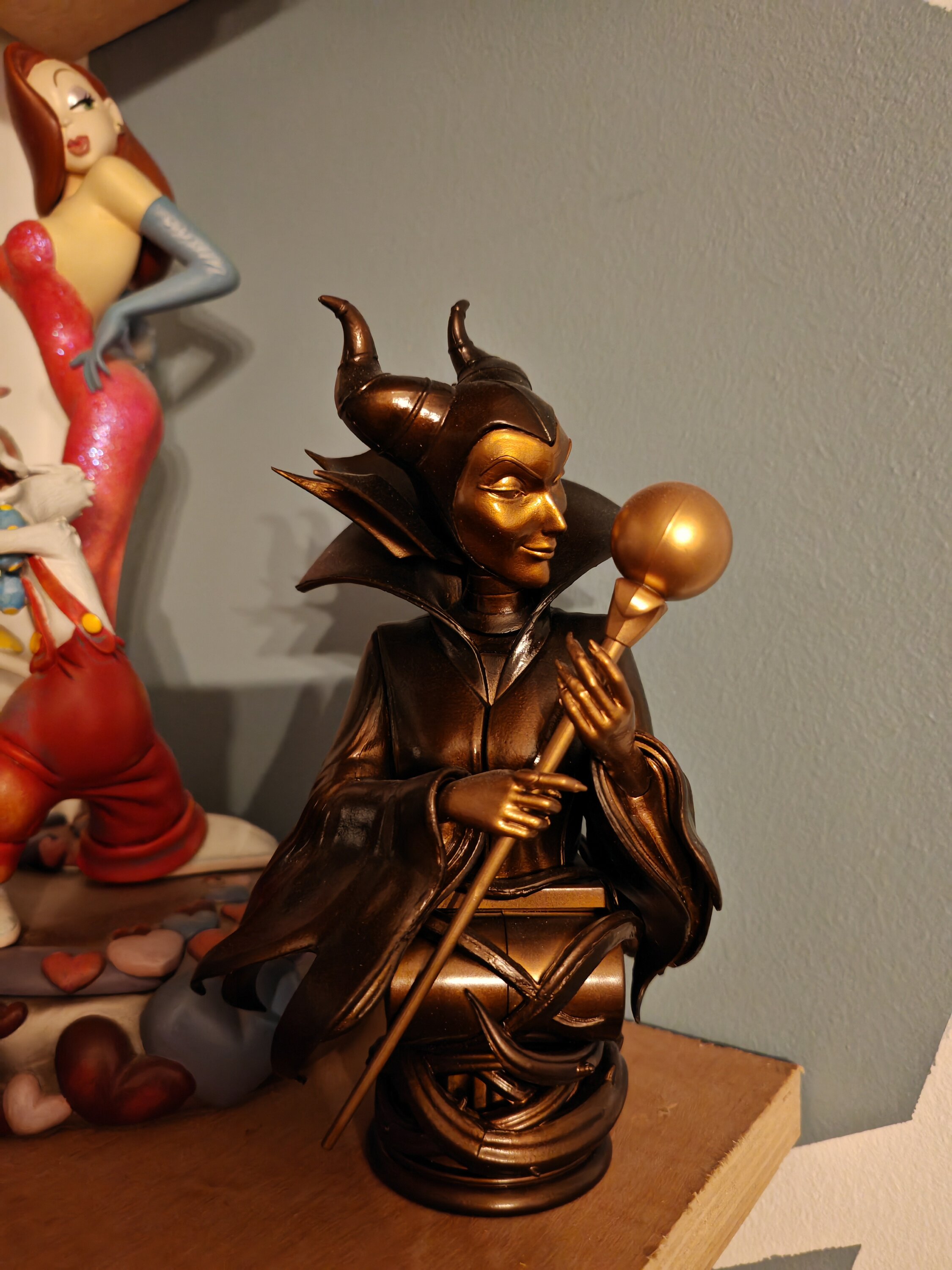 Deze buste van Maleficent is ronduit subliem en het kopereffect geeft hem een zeer kostbare uitstraling. Om te kopen met je ogen dicht!