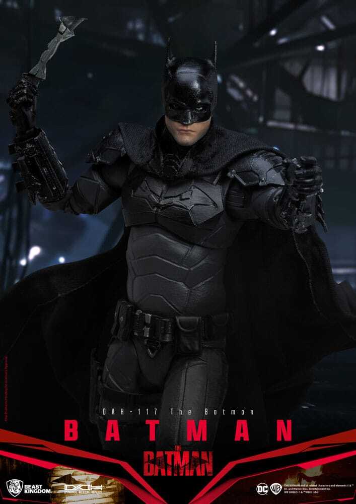 Vakkundig vormgegeven met minutieuze aandacht voor detail, beschikt Batman over zijn kenmerkende pantserpak, iconische kap en vloeiende cape, die het rauwe en realistische ontwerp uit de film getrouw weergeven. De hoogwaardige lak benadrukt elke textuur, van de gebeeldhouwde pantserplaten tot de subtiele gezichtsdetails, en versterkt zo de levensechte en heroïsche kwaliteit van het figuur.