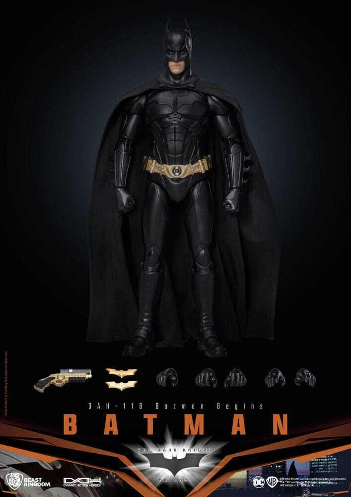 Batman, de Dark Knight uit Batman Begins (2005), komt tot leven in deze Dynamic Action Heroes-figuur op schaal 1/9, met een hoogte van 21 cm. Deze figuur legt de dreigende aanwezigheid, vastberadenheid en tactische genialiteit van Christian Bales Batman vast en voegt de filmheld rechtstreeks toe aan je collectie.
