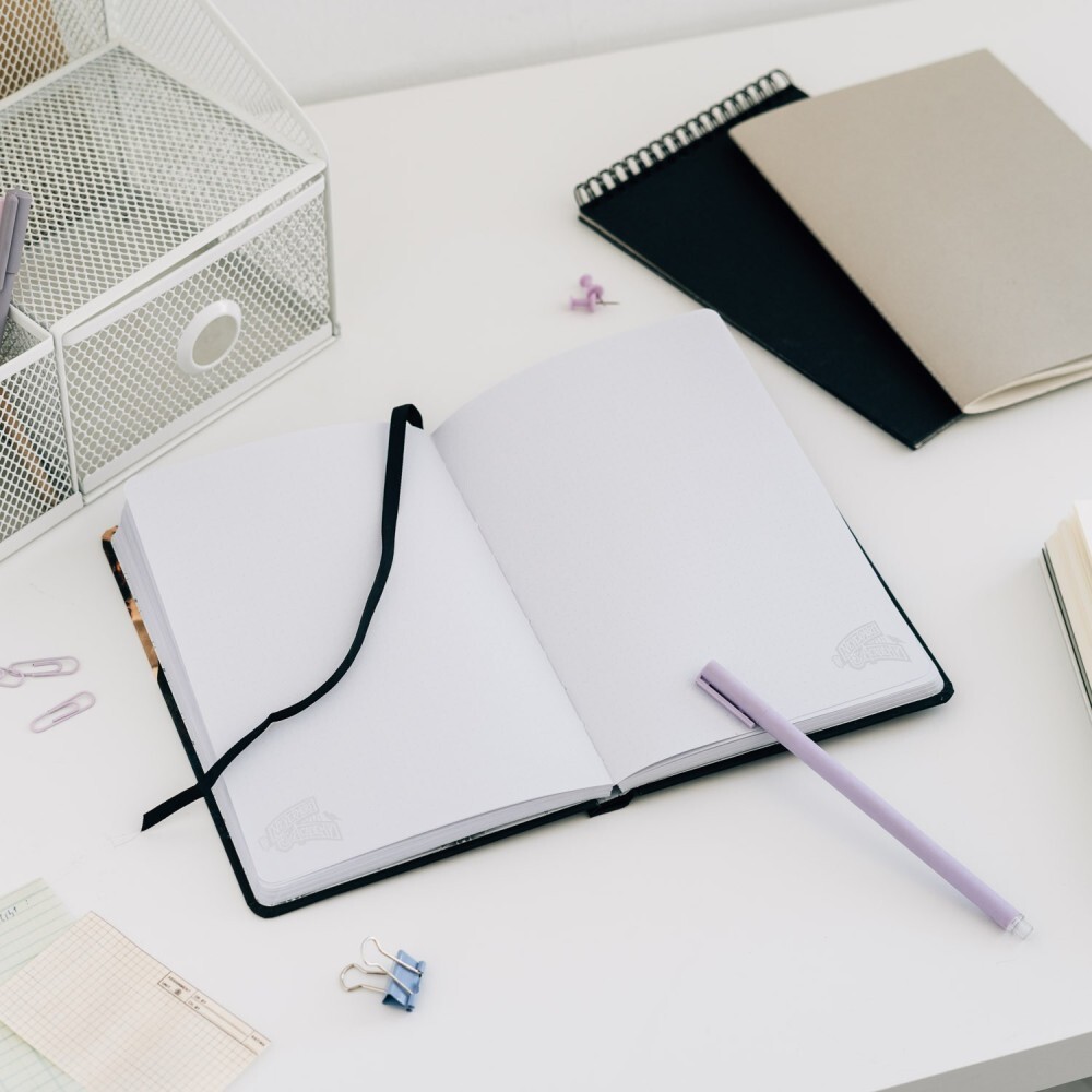 Voorzien van een zachte, matte, gelamineerde kaft, pagina's met stippen, afgeronde hoeken, gelijmde binding en een lintje als bladwijzer. Bevat 96 vellen (192 pagina's) papier van 100 g/m².