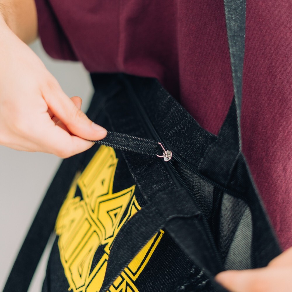 Maak indruk met deze premium Iron Maiden shopper! Gemaakt van 100% katoen, heeft hij twee handvatten, een ritssluiting, een klein binnenvakje en twee buitenvakken, waarvan er één is afgesloten met een metalen sluiting. Versierd met een patch en zeefdrukontwerpen geïnspireerd op de legendarische band, is hij perfect voor fans die zowel stijl als functionaliteit willen.