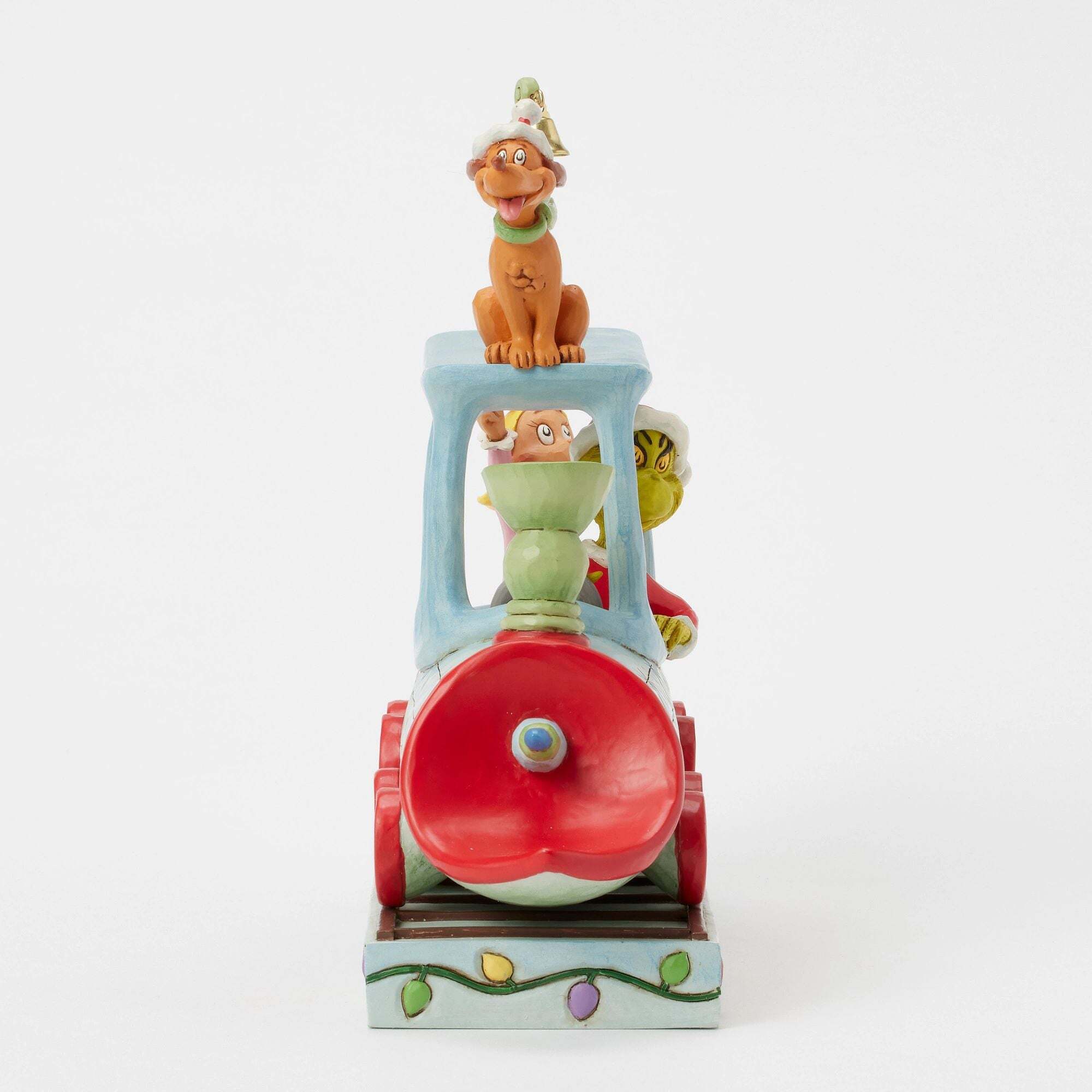 Stap aan boord van de Grinchy Express! In dit charmante Jim Shore beeldje neemt de Grinch de leiding over een versierde locomotief. Max zit bovenop de locomotief terwijl Cindy Lou een echte bel laat rinkelen, wat voor een extra sonisch tintje zorgt! Ontworpen door de bekroonde kunstenaar en beeldhouwer Jim Shore voor The Grinch Collection. Deze beeldjes zijn geen kinderspeelgoed. Alleen bedoeld voor volwassenen. Hoogte: 23,5 cm