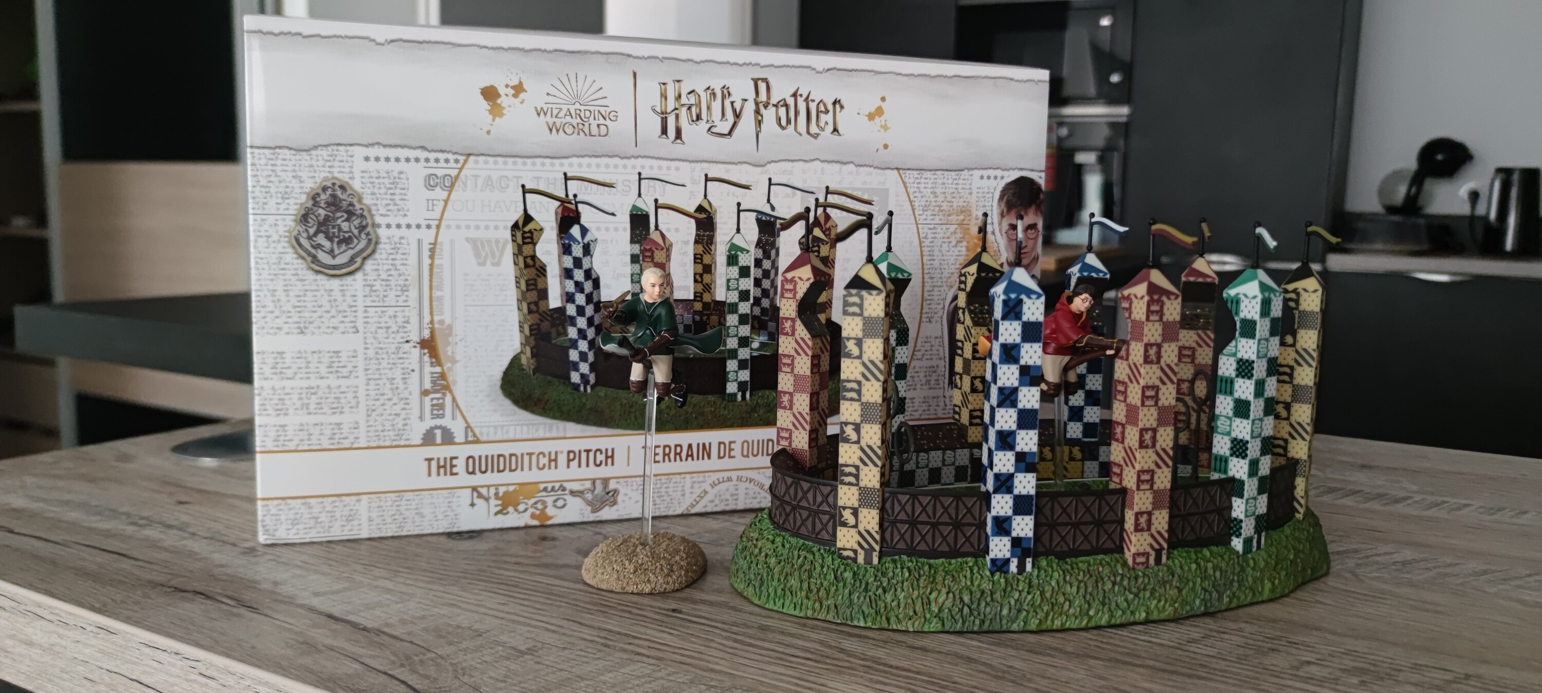 De collectie groeit en wat is er beter dan het klassieke Quiddich-spel? De productie is nog steeds van hoge kwaliteit, hoewel iets kleinschaliger. Je kunt een prachtige combinatie maken met de figuurtjes van Harry en Draco die vechten om de overwinning. De productie is erg mooi, dat moet ik toegeven, en ik vind de nieuwe verpakking ook mooi, minder karton en zonder piepschuim, het is erg prettig. Ik kan niet wachten tot de collectie verder gaat om te zien wat ons te wachten staat...