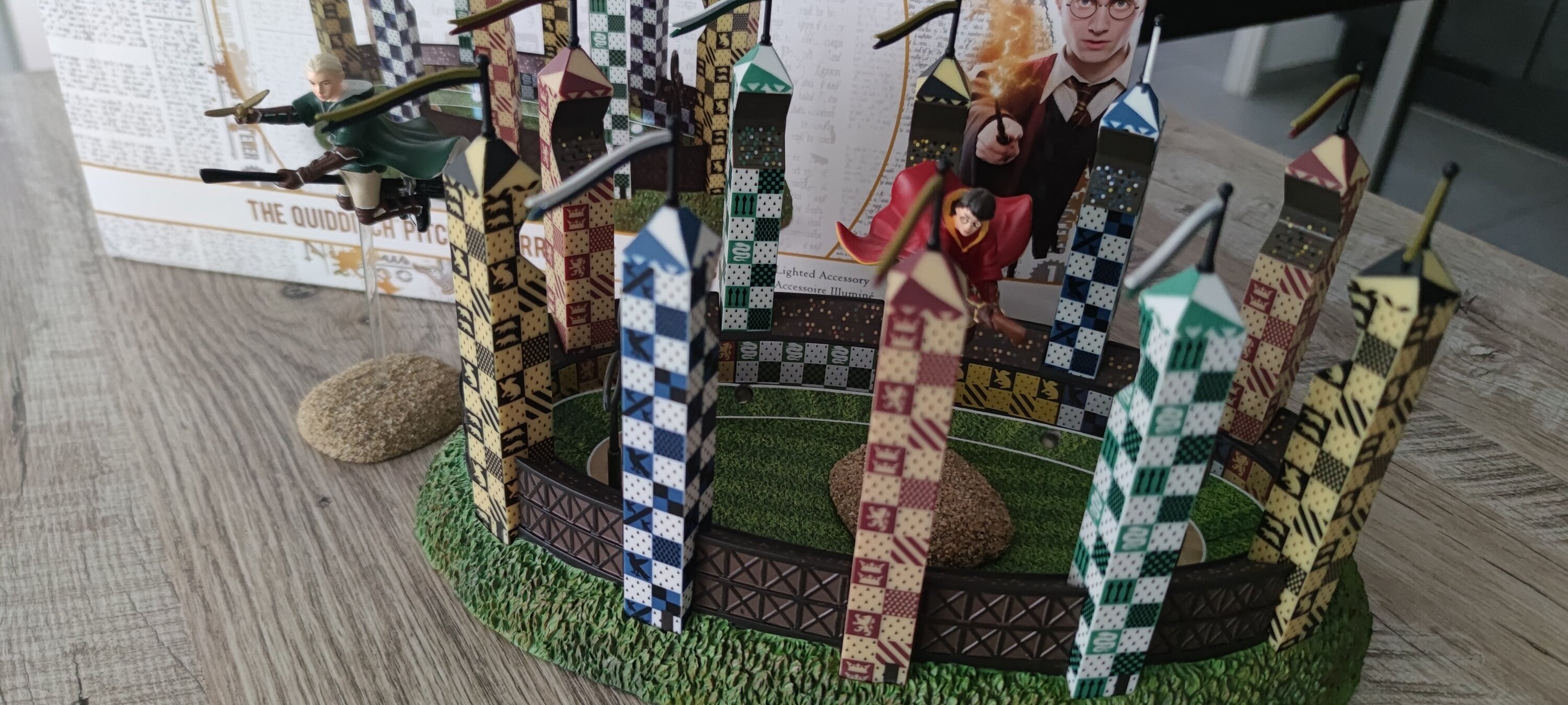 La collection s'agrandit et quoi de mieux que le terrain de Quiddich, un classique. La réalisation est toujours d'une grande qualité bien qu'une peu plus petite au niveau de l'échelle. Vous pouvez faire un magnifique combo avec la figure d'Harry et Drago qui se disputent la victoire. La réalisation est très belle il faut l'avouer et j'aime aussi les nouveaux emballage, moins cartonnés et sans polystyrène, c'est très agréable. Hâte que la collection se poursuive pour voir ce que l'on nous réserve...