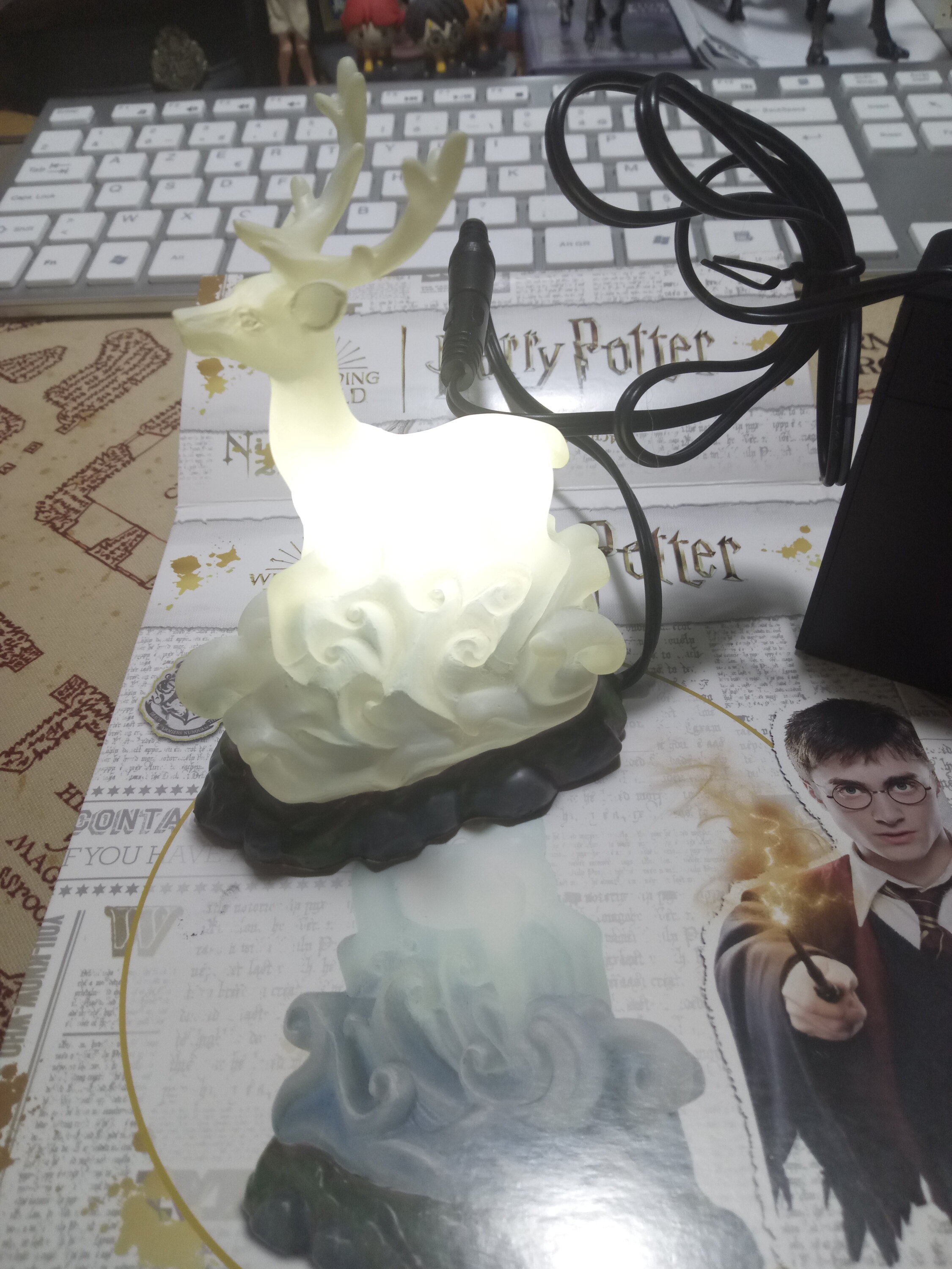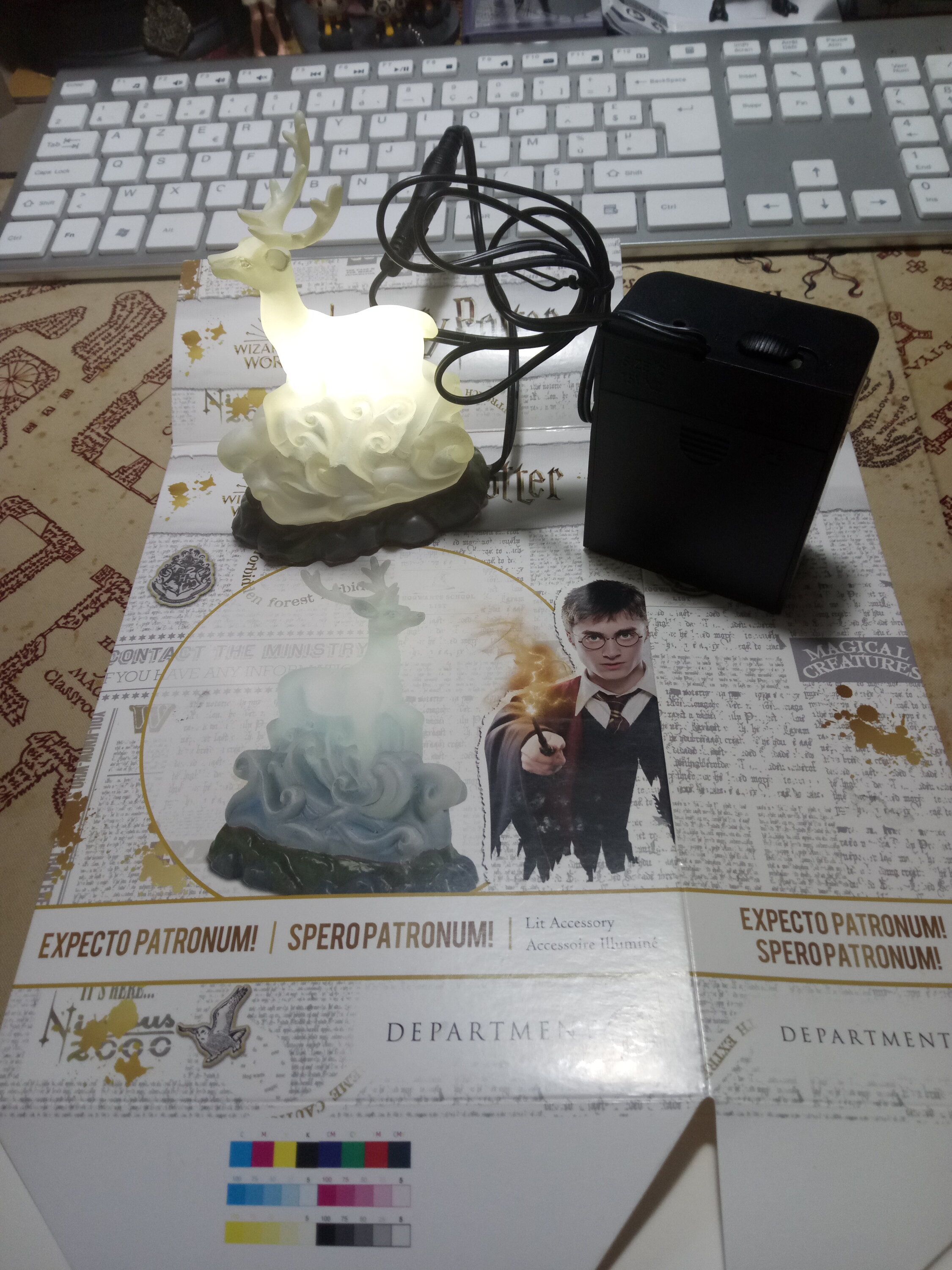 Le Patronus cerf de Harry Potter est plus "blanc de vieux plastique vieilli" que le beau bleuté représenté sur la photo du descriptif. Mais ce qui me dérange le plus c'est le boitier pour les piles et le fil. Il y aurait eu largement la place pour mettre 2 piles AAA dans le socle du Patronus pour alimenter la Led, au lieu d'un boiter à part avec 2 piles encore plus grosses que des AA ! Vu le prix de départ, ça fait cher pour le rendu obtenu. Un peu décevant pour le Département 56.