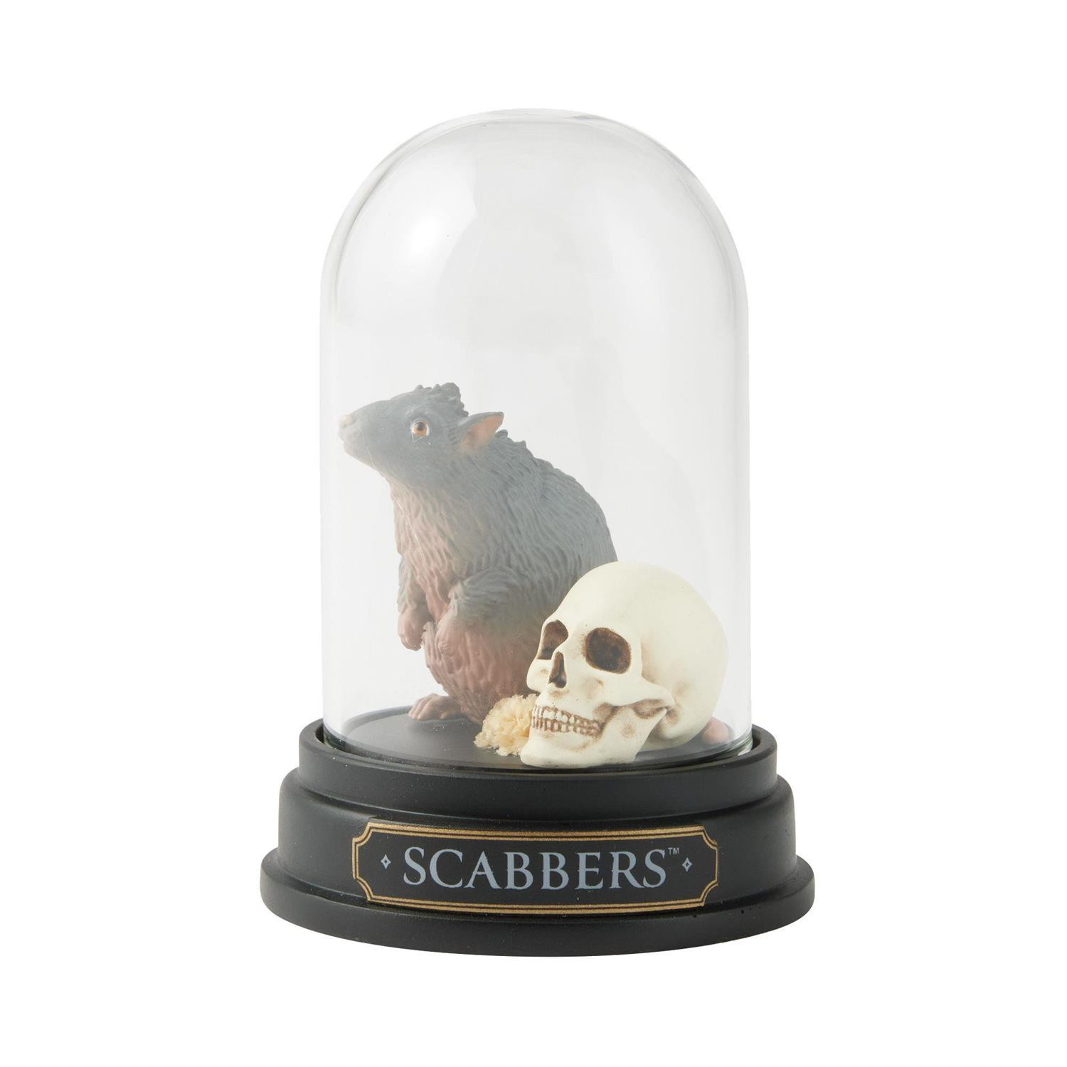 In de wizarding world is een animagus een heks of tovenaar met het vermogen om te transformeren in een dier en terug te keren naar menselijke vorm. Peter Pettigrew, een van Voldemorts meest loyale dienaren, bezit deze gave en verbergt zich onder de gedaante van Rons huisdierrat, Scabbers. Dit miniatuurbeeldje, nauwkeurig met de hand gebeeldhouwd en beschilderd, evenals de schedel, worden gepresenteerd onder een transparante glazen koepel, die de capriolen van het undercover knaagdier oproept. Alles is verpakt in volledig gemarkeerde verpakking.