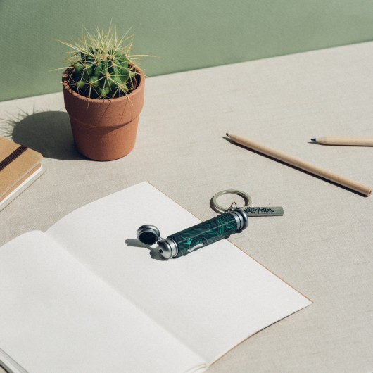 Officiële replica van de deluminator, een uniek object in de magische wereld, dat in staat is om licht uit omringende lichtbronnen te halen en vast te houden, gemaakt door Albus Dumbledore zelf en nagelaten aan Ron Weasley. Het bevat een verlichtingsmodus met koud licht, die toegankelijk is door het deksel bovenop het object op te tillen en die wordt geactiveerd door een schakelaar aan de zijkant van het object. Het kan gemakkelijk worden vervoerd dankzij het kleine formaat en de sleutelhangerfunctie.