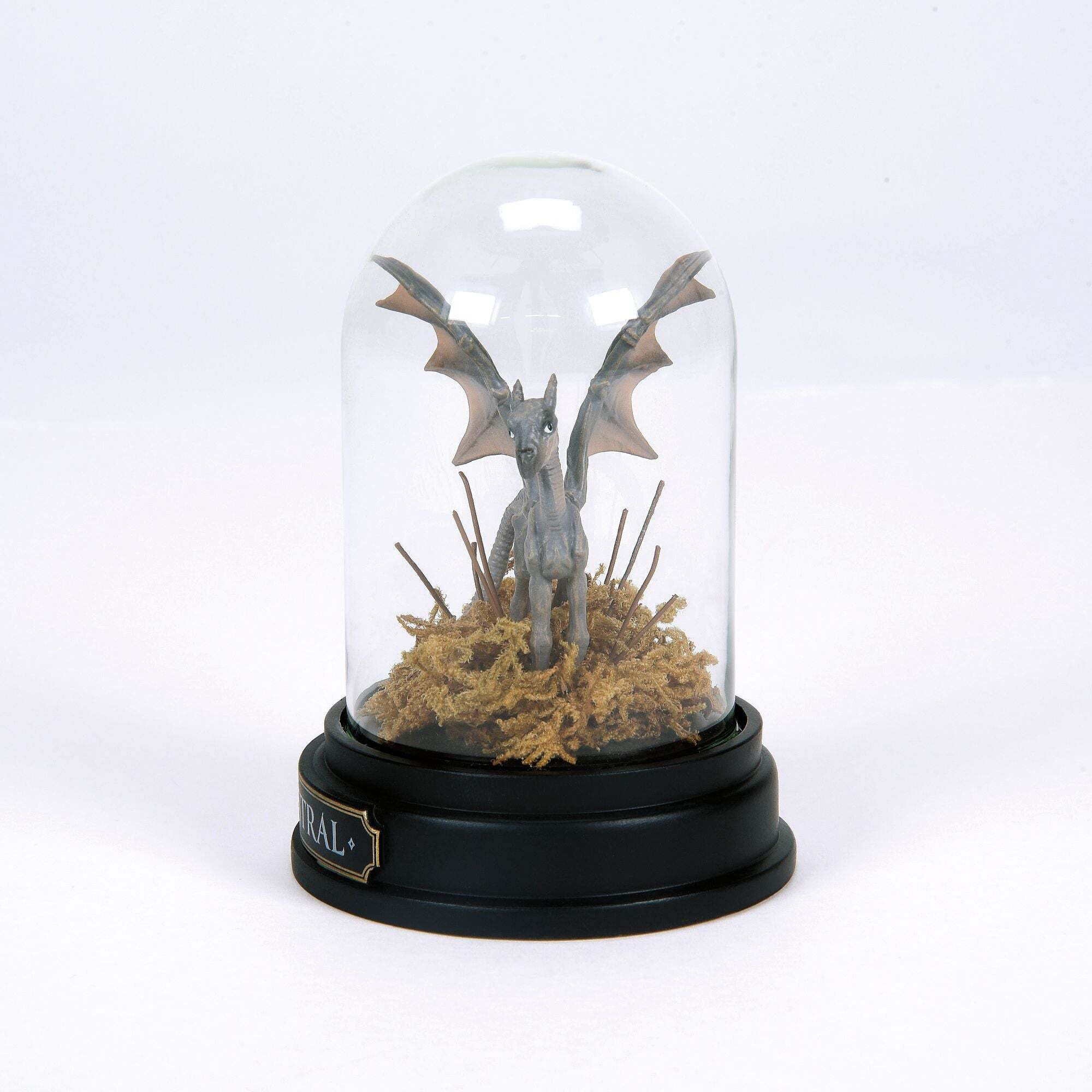 Deze gevleugelde Thestral symboliseert de schoonheid van leven en dood in de wizarding world door de verbinding met het hiernamaals. Ontdek de mysteries van de magische wereld met dit handgebeeldhouwde en handbeschilderde miniatuurbeeldje, elegant gepresenteerd onder een heldere glazen stolp. Een betoverend object voor elke Harry Potter liefhebber. Alles verpakt in een volledig bedrukte verpakking. Hoogte: 7,5 cm