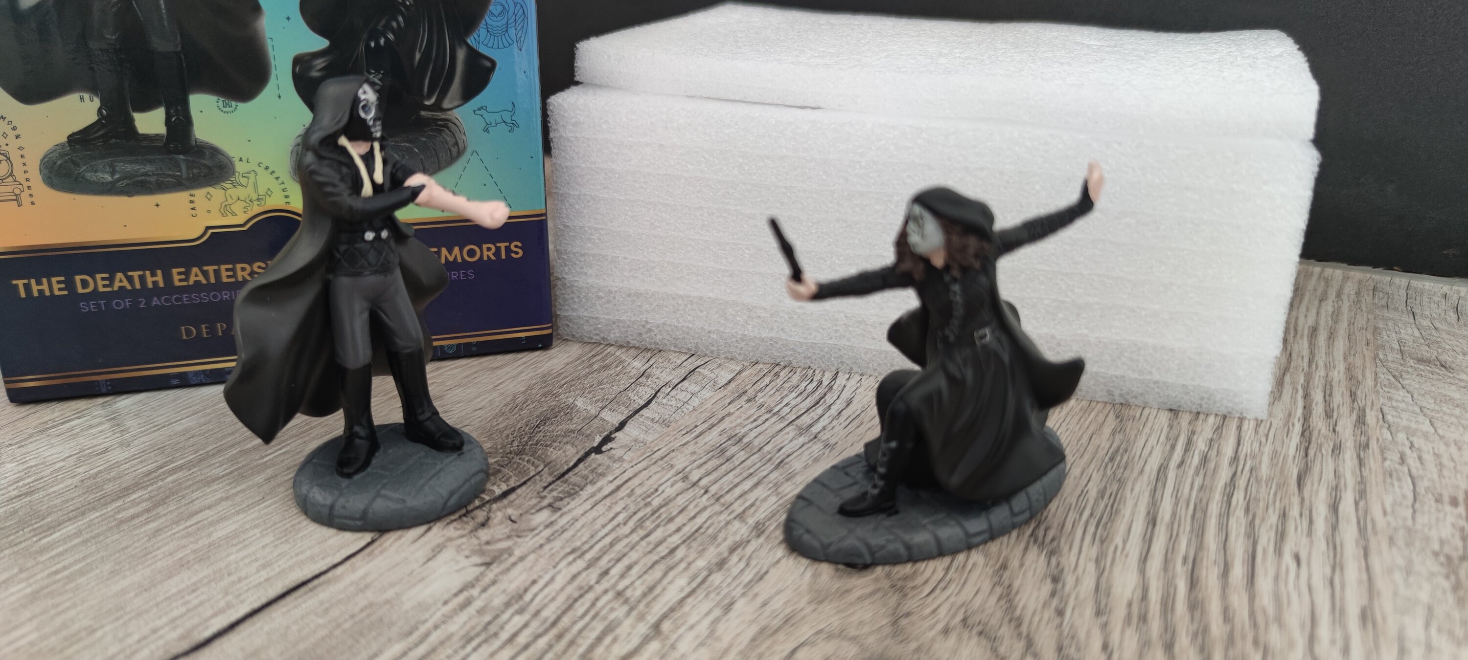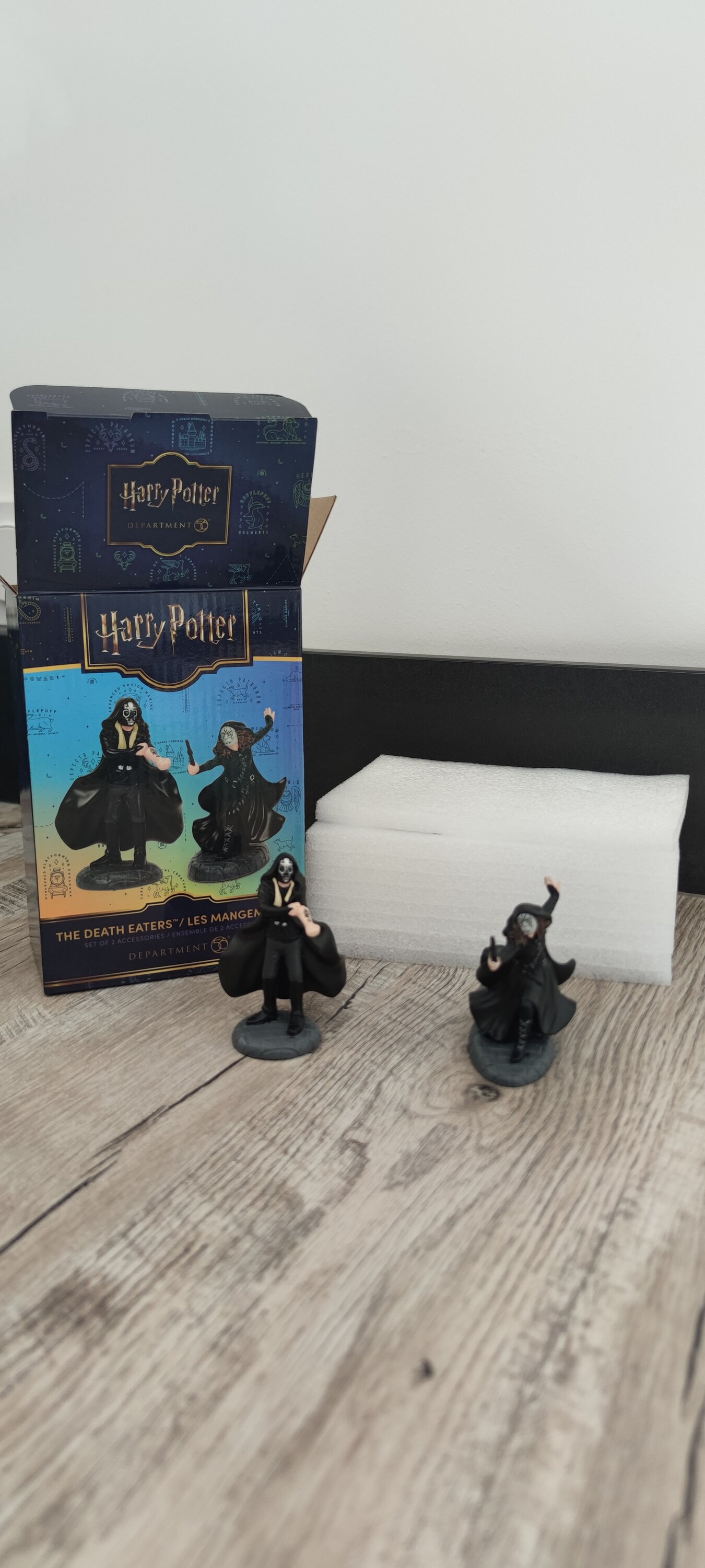 Les figurines sont vraiment très bien réalisées avec le soucis du détail. On voit bien le tatouage du personnage qui montre son avant-bras. Elles sont robustes et bénéficient de patins antidérapant. On est sur la nouvelle gamme de D56 avec cette fois une boîte en carton colorée et non plus les simples emballages fin qui entouraient le polystyrène ou la protection.