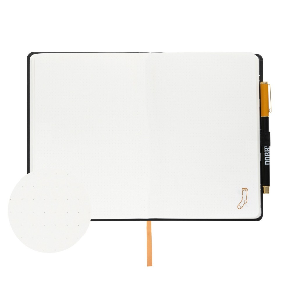 A5-notitieboek (14,8 x 21 cm) met pen. Zachte harde kaft, afgeronde hoeken, gelijmde binding, speciaal ontworpen bullet-stijl binnenwerk, lint als bladwijzer, binnenvak en elastische sluiting. Het binnenwerk bevat 96 vellen (192 pagina's) papier van 100 g/m². Inclusief pen en elastische band.