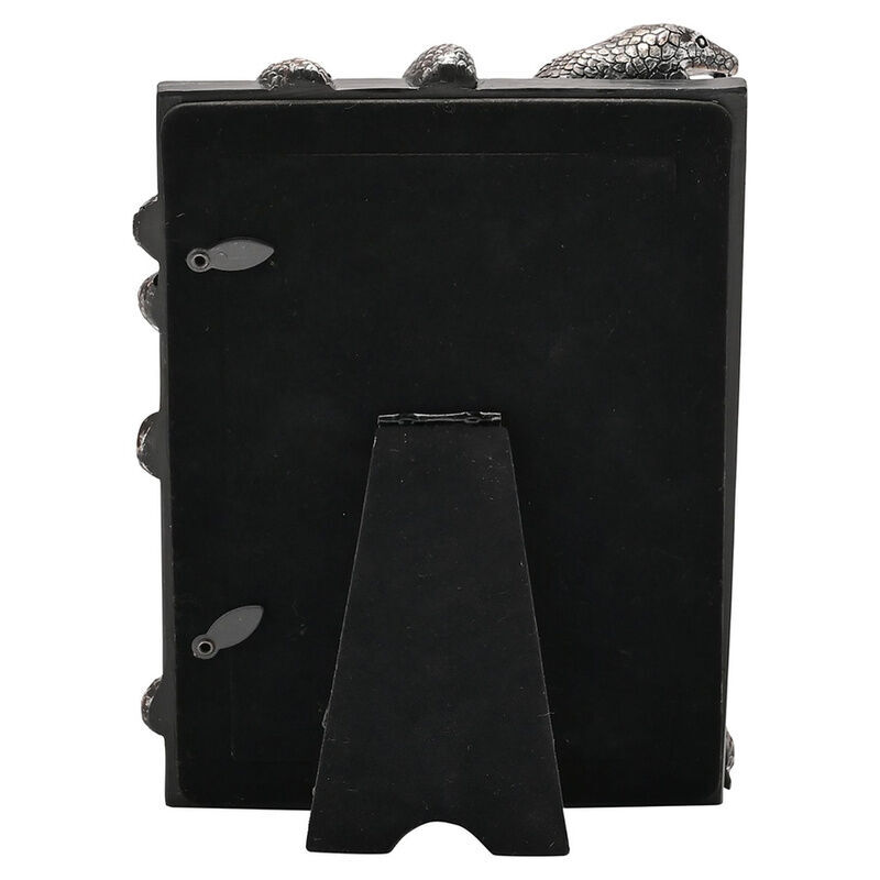 De glanzende afwerking benadrukt de fijne details en creëert een visueel verbluffend en fraai vormgegeven verzamelobject. Een zelfstandige fotolijst met een rechthoekige opening. De opening is 10x15 cm en de oriëntatie is staand. Dit is een fascinerend eerbetoon aan de duistere kant van magie.