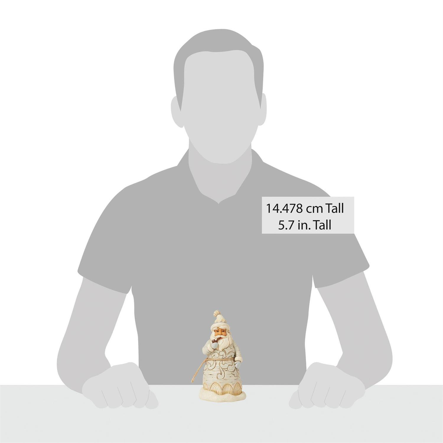 Dit kleine kerstmanbeeldje toont Kerstmis in een geaccentueerde witte rozemarijnmantel en -hoed. Deze kerstman rookt een pijp en voegt extra warmte toe aan je winterinterieur. Vier het seizoen met de White Woodland -collectie van Jim Shore.