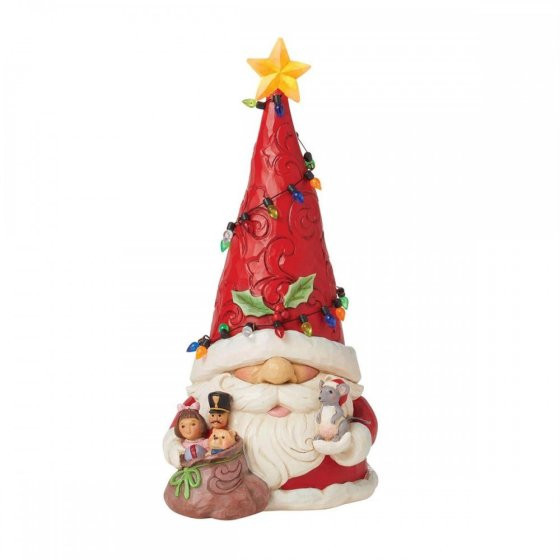 Beeldje Kabouter Kerstman Met Lichtslingers Figuur - Jim Shore Heartwood Creek