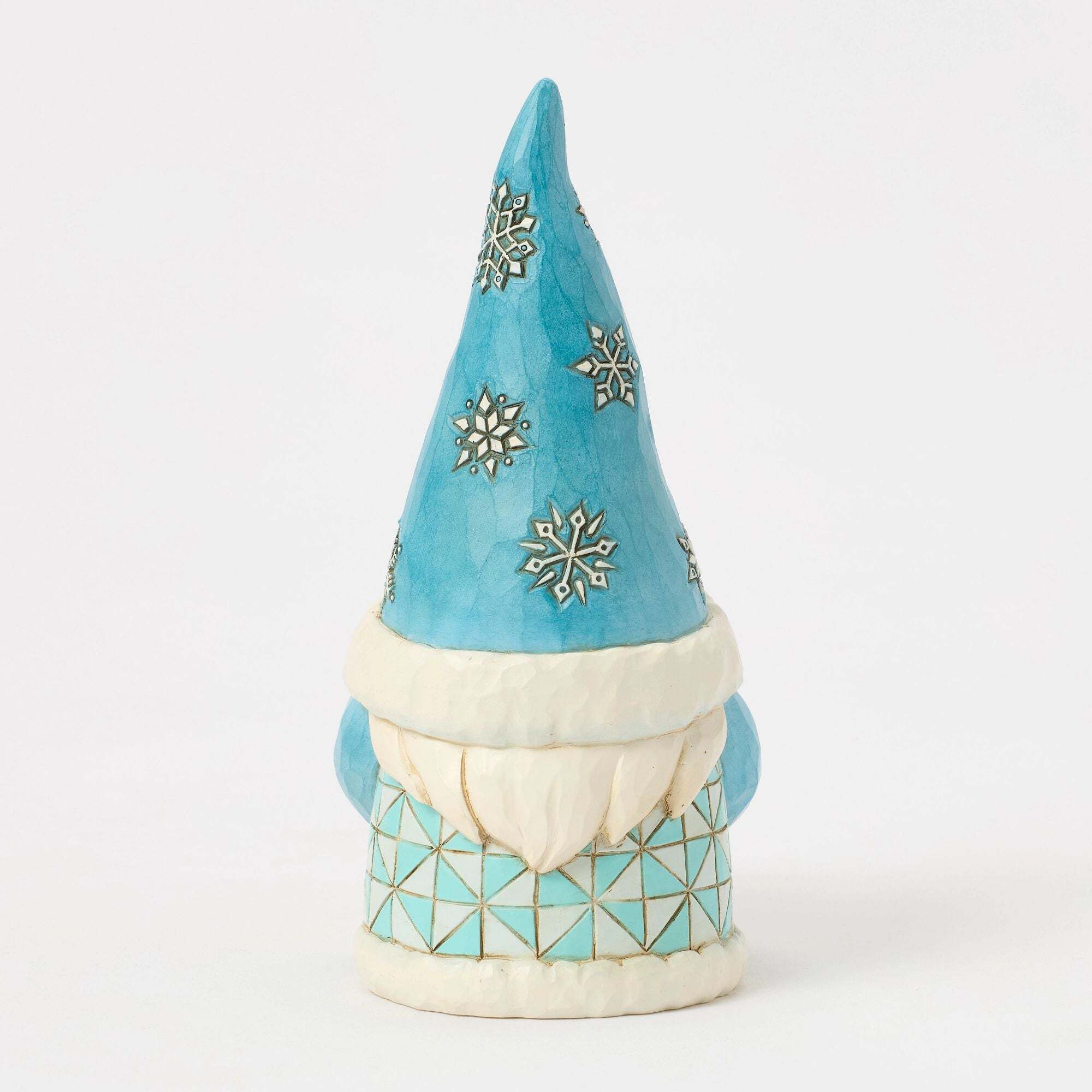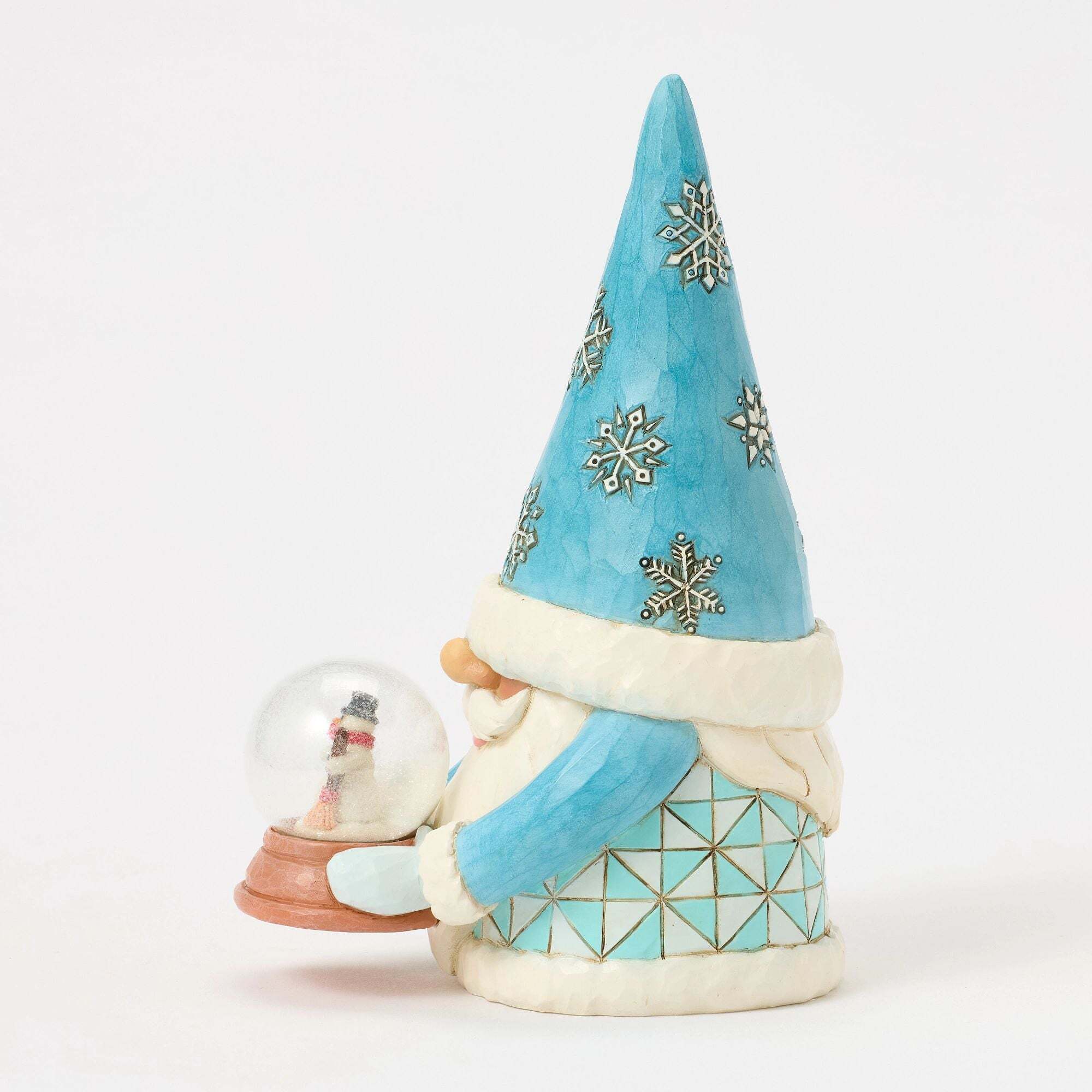 Deze Kerstmis van Jim Shore draagt een hoed versierd met sneeuwvlokken. Hij draagt ook een charmante sneeuwbol met een miniatuur sneeuwpop, die de magie van de feestdagen vastlegt en een warme, magische toets toevoegt aan uw kerstdecoratie.