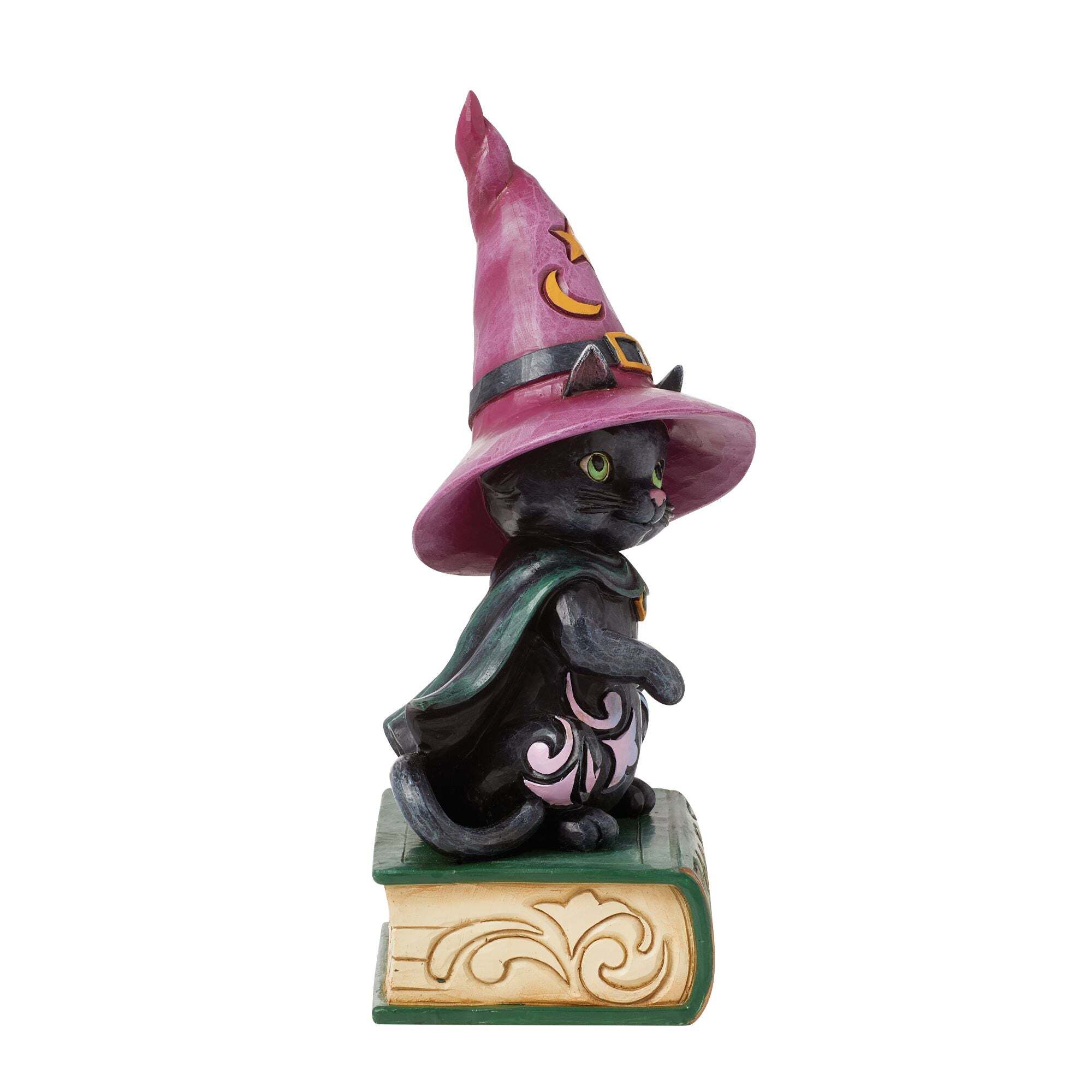 Breng een vleugje magie met dit schattige Jim Shore -beeldje van een zwarte kat met een heksenhoed en -cape. Zittend op een spreukenboek voegt dit kleine katje een vleugje zoete charme en betoverende charme toe aan je Halloween .