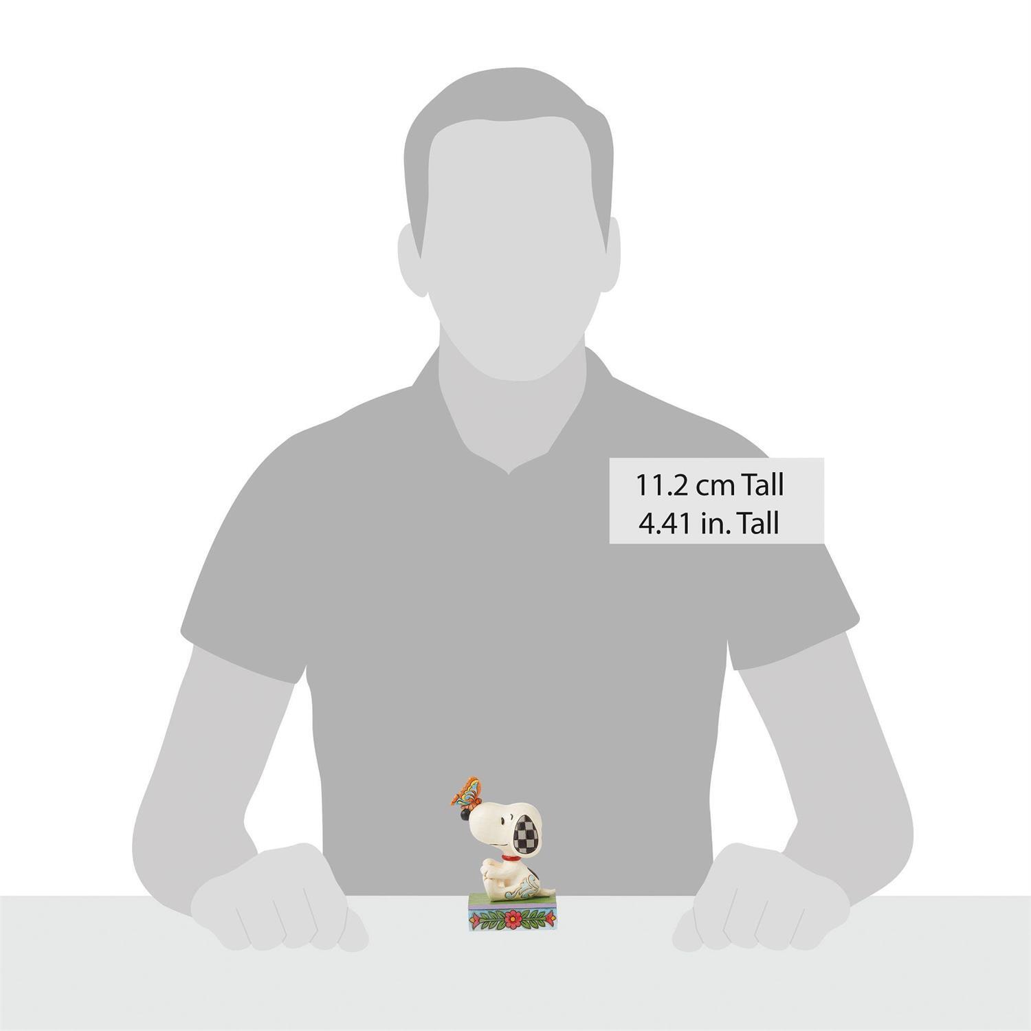 In dit betoverende ontwerp van Jim Shore zit Snoopy in het gras op een podium dat is versierd met lentebloemen, genietend van de frisse lucht. Een prachtige vlinder met rozemarijndetails landt voorzichtig op Snoopy's neus en nodigt uit tot vriendschap en evenwicht.