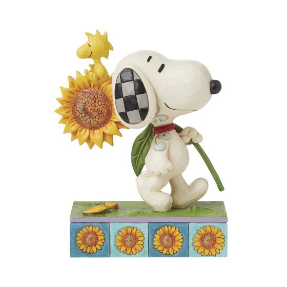 Vier zonnige dagen met dit prachtige kunstwerk van Jim Shore , waarop Snoopy een grote zonnebloem draagt en Woodstock bovenop de bloemblaadjes staat. Op een podium van levendige bloemen legt dit charmante stuk de vreugde van vriendschap en de schoonheid van de natuur vast.