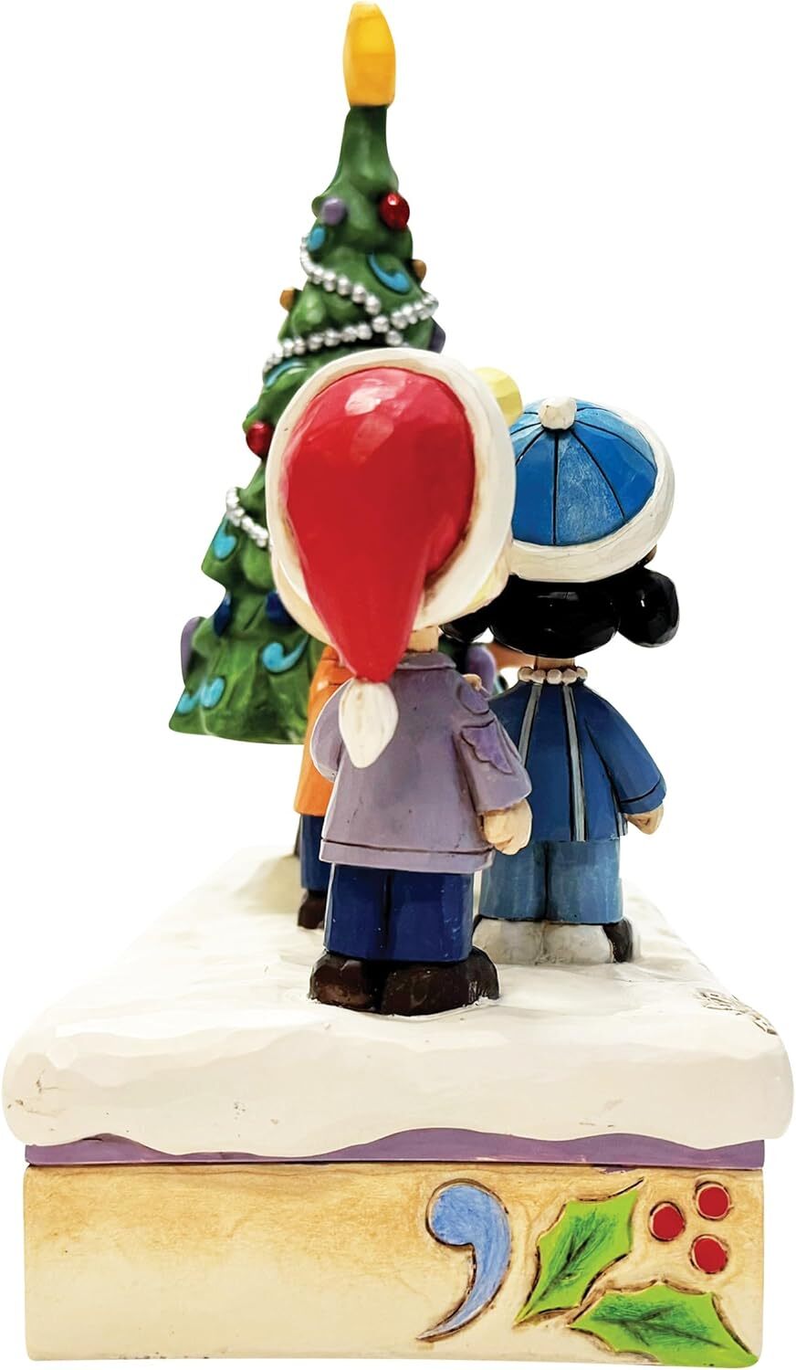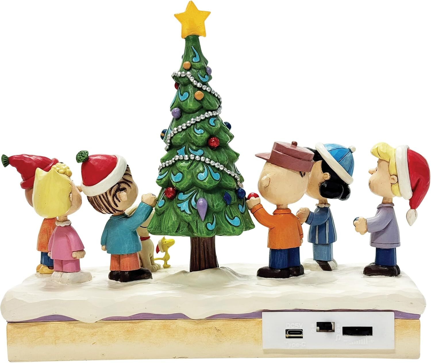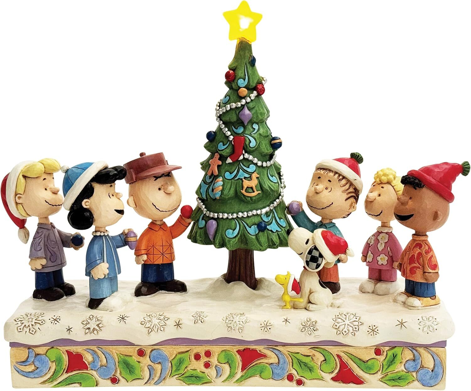 Muzikaal beeldje: uit de Jim Shore Peanuts-collectie, getiteld "O Kerstmis Tree". Combineert Jim Shores onmiskenbare populaire stijl met klassieke Peanuts-personages.
