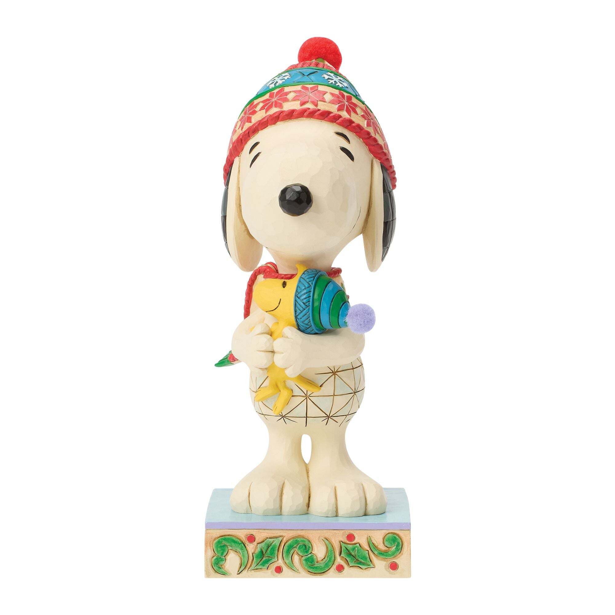 Dit grote ontwerp van Jim Shore toont Snoopy die zijn beste vriend, Woodstock, stevig omhelst. Met kleurrijke accenten in volkskunststijl, gedetailleerde feestkleding en lieve glimlachjes is het een vrolijk eerbetoon aan liefde, loyaliteit en de geest van Peanuts.