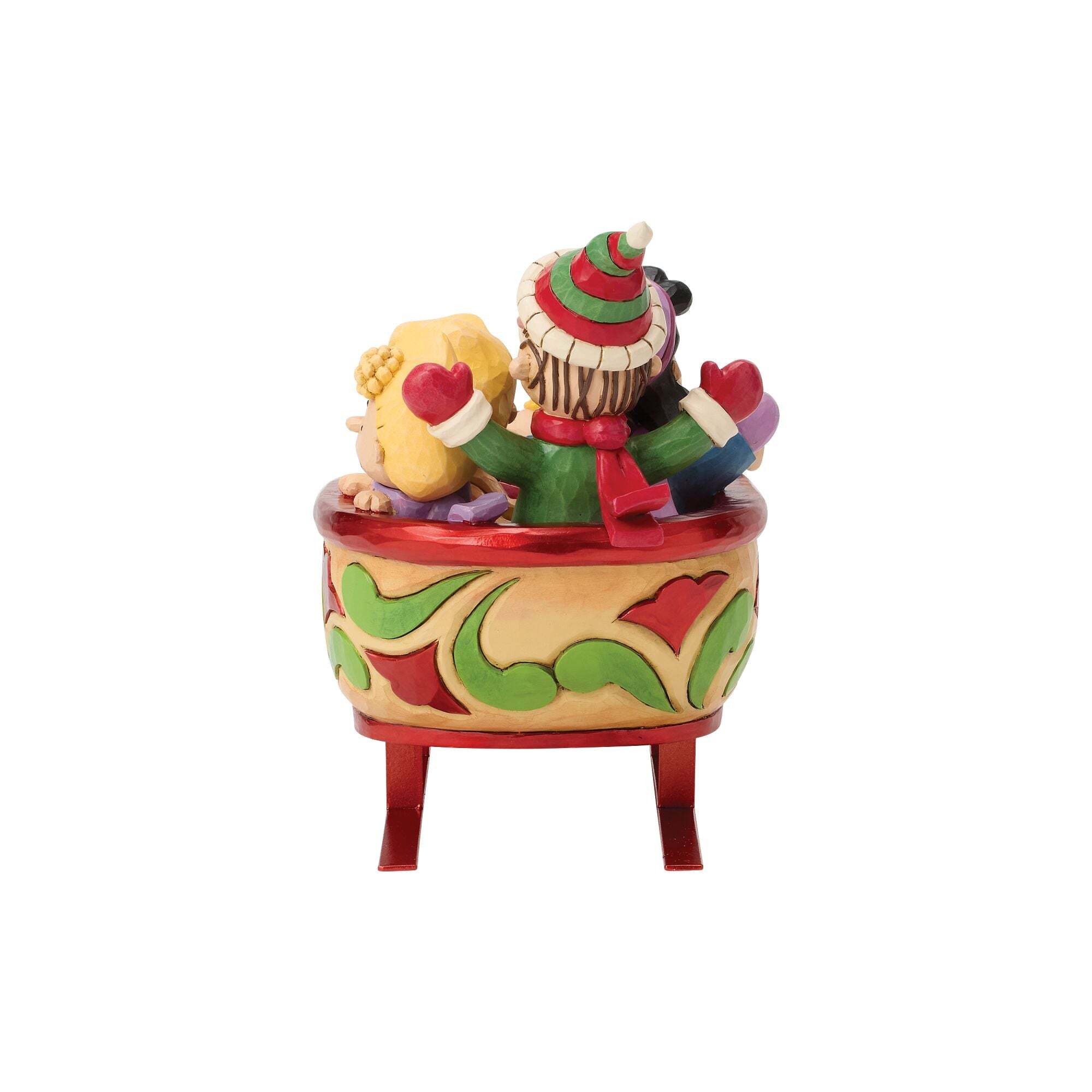 Charlie Brown, Snoopy en andere geliefde Peanuts-vrienden maken een feestelijke sleetocht in deze gedetailleerde scène van Jim Shore . Met accenten in volkskunststijl en een klassieke kerstsfeer is het een hartverwarmende herinnering aan de gezelligheid van Kerstmis .