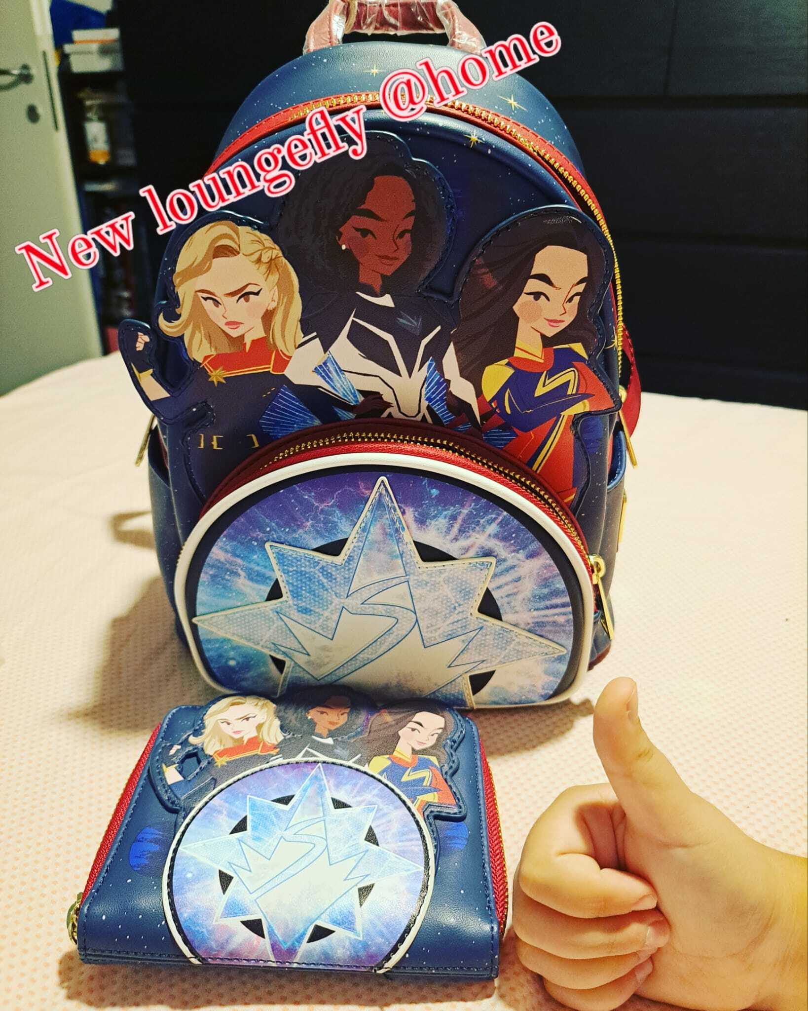 Maak je klaar voor een avontuur van kosmische proporties! Loungefly Marvel Studios' De Marvels Group Mini Rugzak brengt drie geweldige superhelden samen. Op de voorkant staan Captain Marvel, Photon en Ms. Marvel samen in een kunststijl exclusief voor Loungefly.
