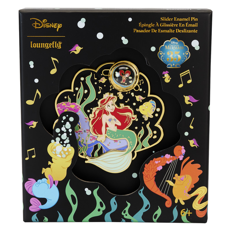Trek een schelp omhoog voor een onderwaterconcert op de eerste rij! Onze Loungefly Disney De Kleine Meermin 35th Anniversary "Life is the Bubbles" 7,5 cm Collector Box Pin is de perfecte schat voor je verzameling.