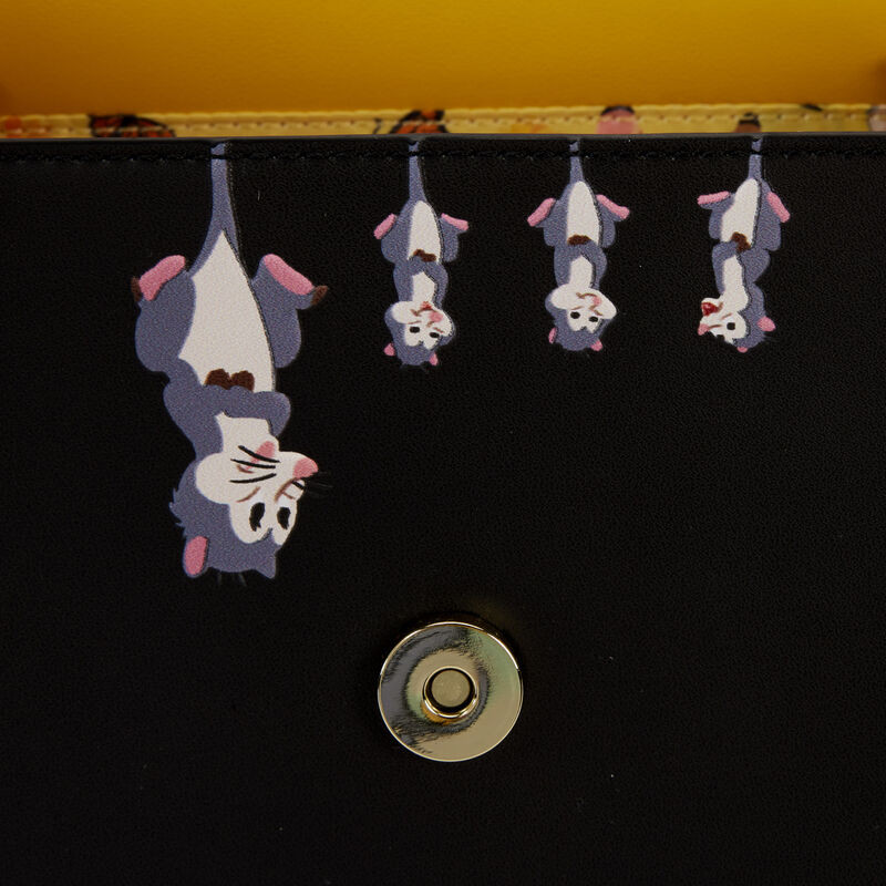 Onder de gouden bloemblaadjes van de bloem gluren Bambi, Bonk en Miss Konijn uit een bloeiend veld. Til de klep op en er hangt een verborgen familie buidelratten rond! Een zwart-witte plaid bedekt de zijkanten van de tas en loopt door op de schouderband erboven, waar zonnebloemapplicaties elk uiteinde omlijsten. Draai de tas om en zie dat Flower zich verstopt in een zonnebloemveld. Deze schoudertas is een stralende aanvulling op elke outfit en is perfect voor Disney-fans die hun favoriete personages dichtbij willen houden.