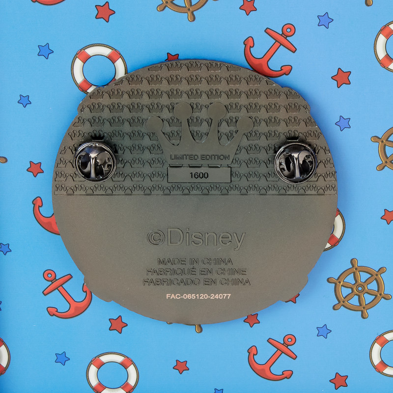 Een mooie speldcollectie is niet compleet zonder een beetje sprankeling. Deze speciale verzameldoospin is klaar om uw verzameling binnen te varen. Op de voorkant van deze ronde pin is Disney's Donald Eend te zien. Hij bevindt zich in het midden van een reddingsboei en hieronder vindt u zijn naam en datum (1934). Donald Eend verschijnt in kleur, maar met een snelle polsbeweging (dankzij de lenzichtig kenmerken) verschijnt hij ook in zwart-wit. Glitter siert de randen van de reddingsring om extra glans toe te voegen. Maak furore terwijl je de 90e verjaardag van Donald Duck viert.