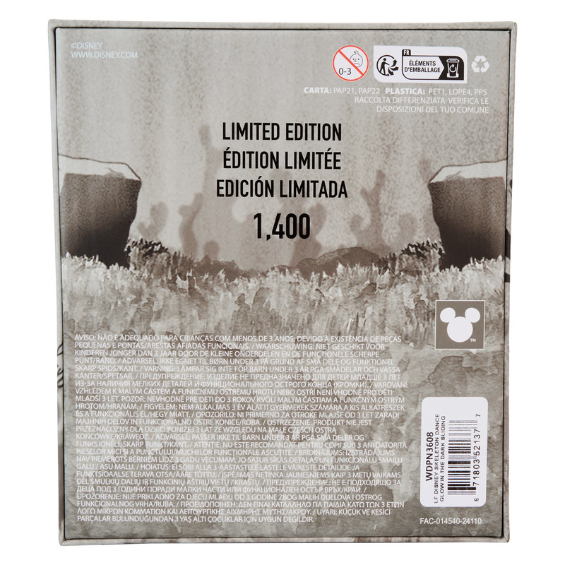 Kenmerken: Emaille pin, bronskleurige hardware, schuifdetails, glow-in-the-dark details, Funko/ Loungefly kroon reliëf (achterkant), gelimiteerde oplage van 1.400 stuks, etalages voor verzamelaars