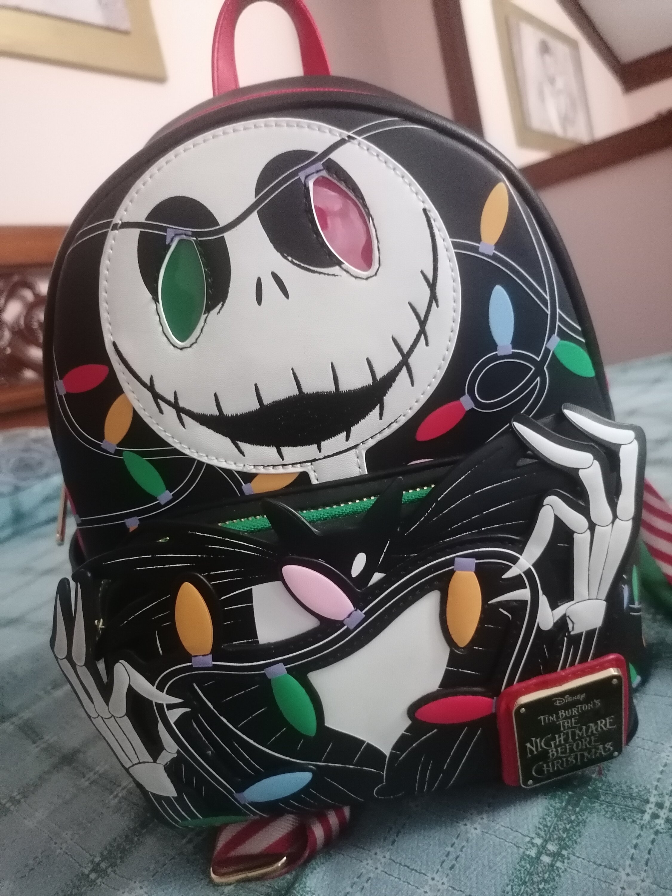 Als je ogen oplichten bij de gedachte aan Kerstmis, dan is deze tas iets voor jou! Jack Skellington omarmt de kerstsfeer in een wirwar van kleurrijke lichtjes. Als het daglicht verdwijnt, zie je hem in het donker gloeien terwijl twee van de lichtjes oplichten met oplichtende details! Deze mini rugzak is een feestelijke toevoeging aan elke outfit en voegt een lichtpuntje toe aan elke feestdag.
