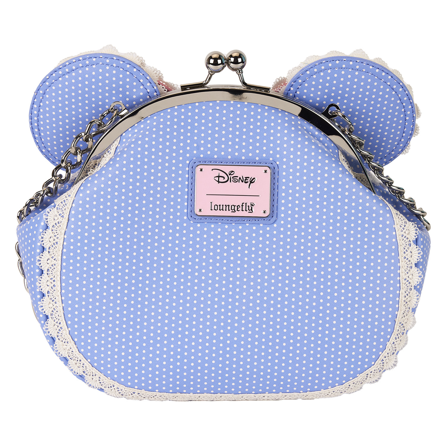 Mode bloeit volop met deze Disney's Minnie Muis "kiss-lock" schoudertas. Speciale Minnie Muis accenten – en een in elkaar grijpende priksluiting – geven dit accessoire een charmante, ouderwetse uitstraling. Haar applicatie-oren, versierd met een stippenprint, steken over de bovenkant uit en de kanten rand zorgt voor een delicate touch. Er zit een roze 3D-strik in het midden en geborduurde rozen ontvouwen zich als decoratief detail. Pak je dagelijkse benodigdheden in, ga op avontuur en zie hoe het plezier opbloeit.