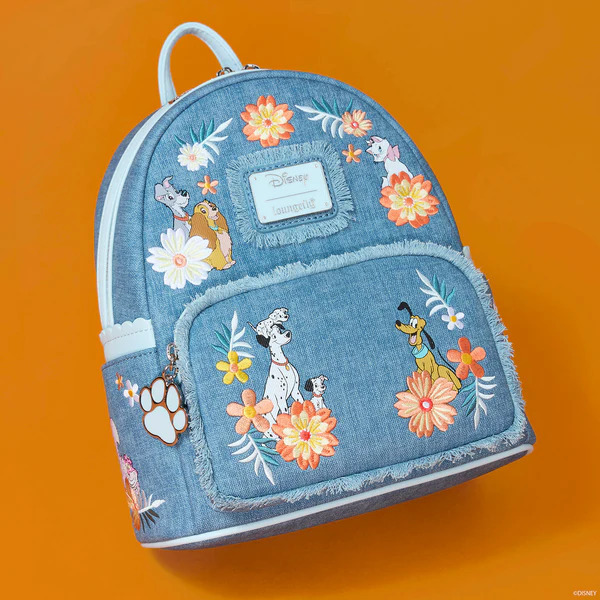 Deze mini rugzak van denim is bedekt met geborduurde bloemendetails – waaronder afbeeldingen van je favoriete Disney-honden en -katten!