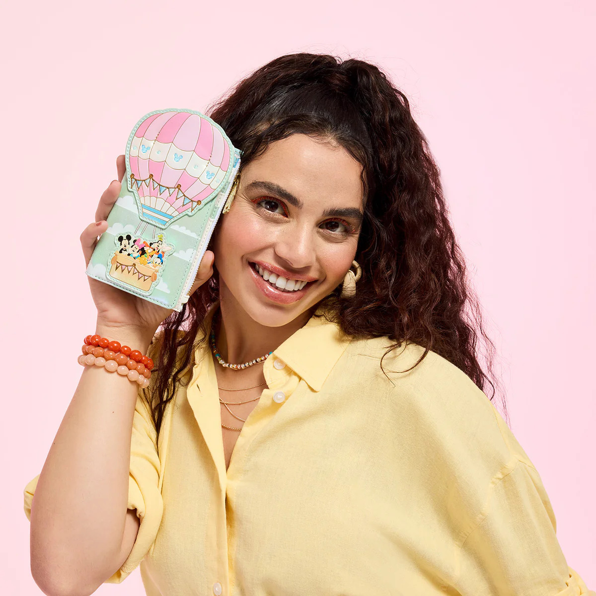 Geef je stijl een boost met deze portemonnee! Op de voorkant vind je een applicatie van een luchtballon met een aantal van je favoriete Disney-personages! Op de achterkant zweven nog meer luchtballonnen in de lucht. Neem een kijkje aan de binnenkant en je vindt er zeven kaartvakken en één transparant vak voor een identiteitsbewijs.