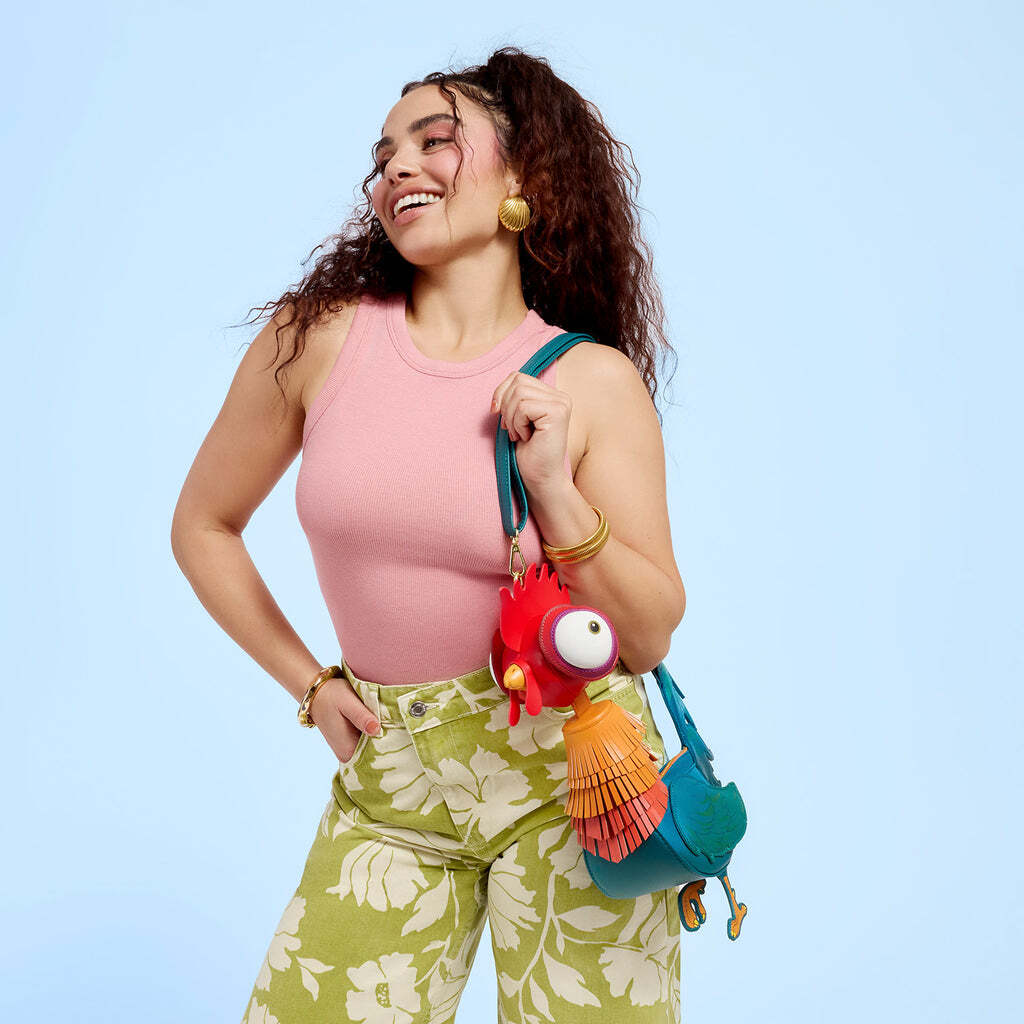 We weten het, hij is ZO iconisch en een must-have! Deze tas heeft de vorm van Hei Hei uit Disney's Moana. Echte franjes geven zijn "veren" een 3D-gevoel.