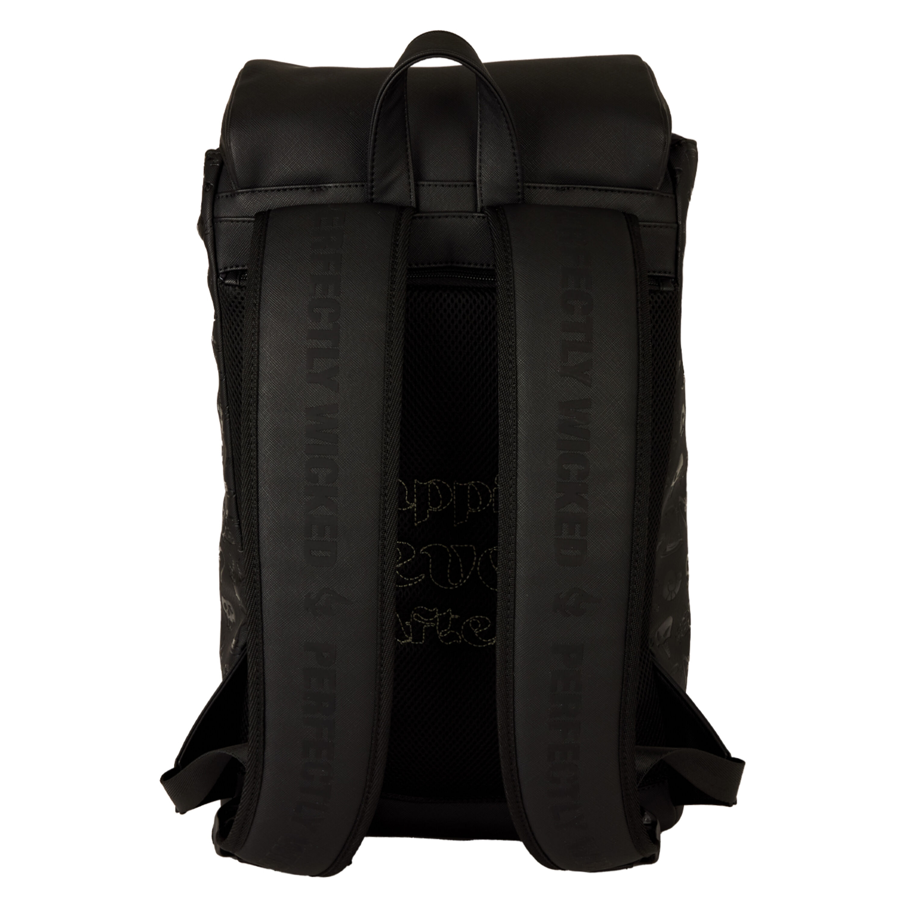 Deze grote rugzak is klaar om alles mee te nemen wat je nodig hebt voor je volgende plan. Op de voorkant staan symbolen van je favoriete Disney-schurken, op de bandjes staat "Perfectly Wicked" en op de achterkant is "Happily Never After" geborduurd.