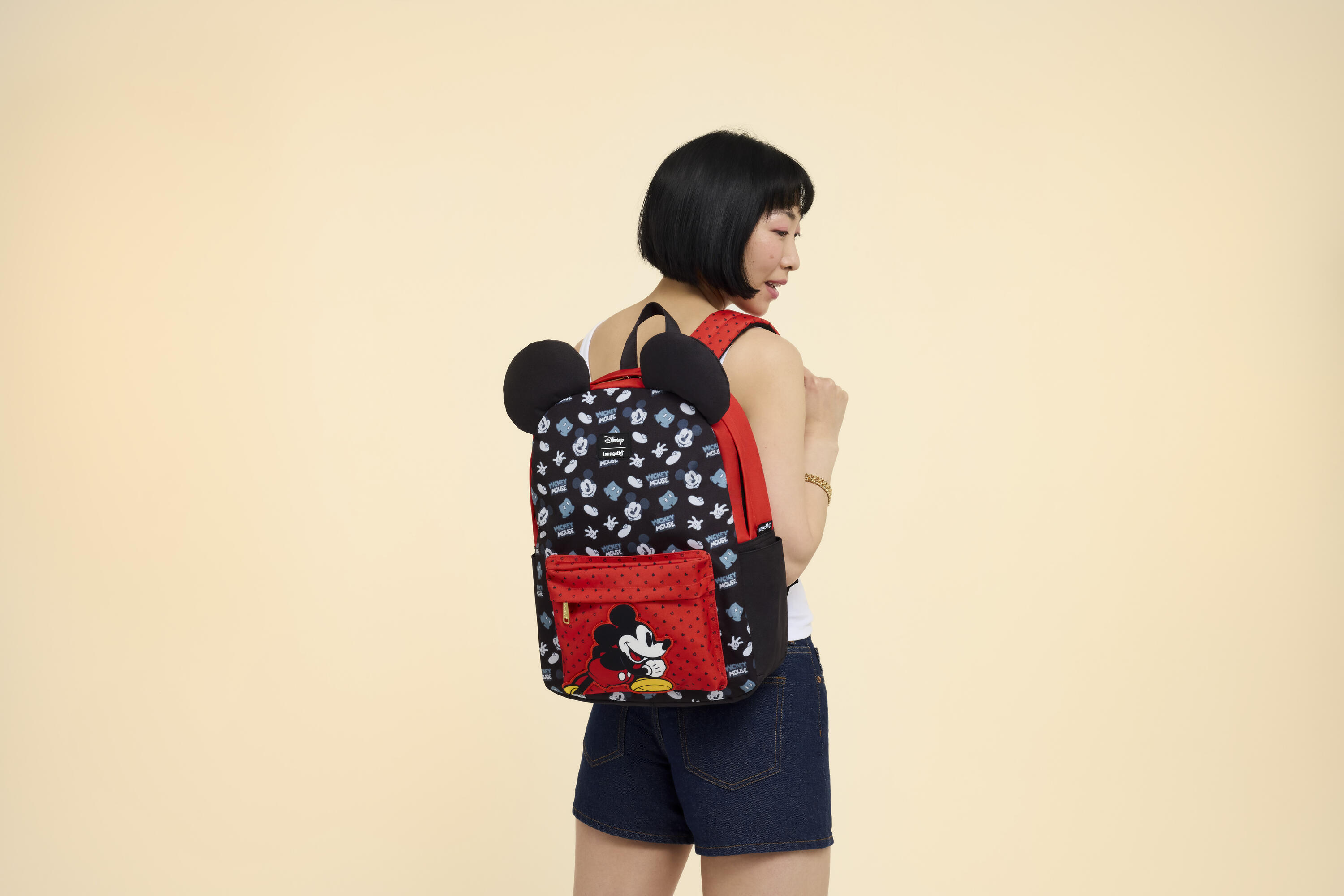 Deze rugzak heeft Mickey Muis op het rode voorvak – hij is altijd onderweg! Over de hele voorkant van de tas vind je motieven van Mickey, inclusief zijn handschoenen, outfit, schoenen en meer! De bovenkant van de tas heeft zelfs 3D Mickey-oren die uit de bovenkant steken!