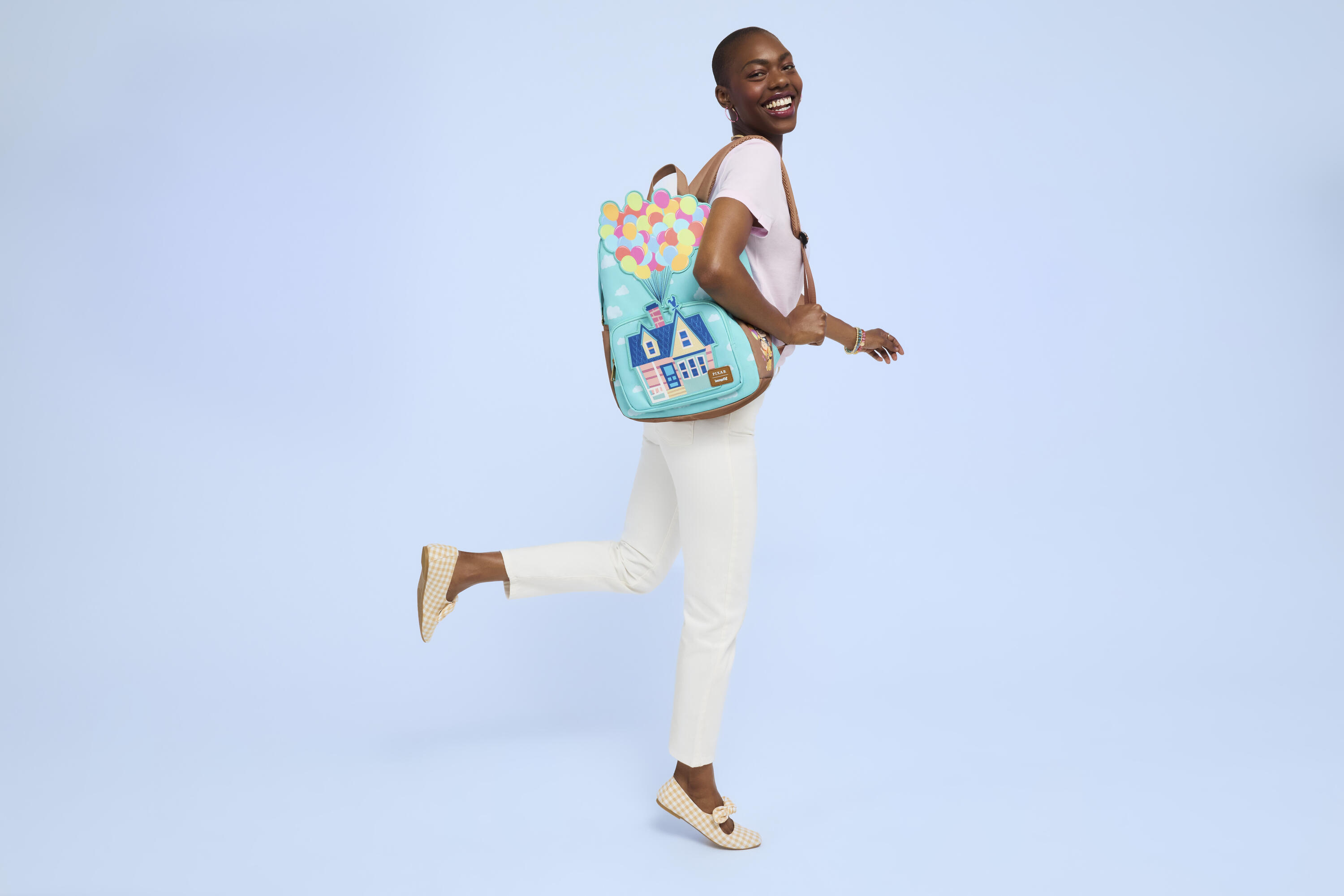 Deze grote tas is geïnspireerd op Disney-Pixar's Up. De voorkant heeft een all-over print van wolken aan een heldere hemel. Op het voorvak staat Carls huis, met daarboven een applicatie van ballonnen. Bekijk de zijvakken om afbeeldingen van je favoriete personages te vinden!