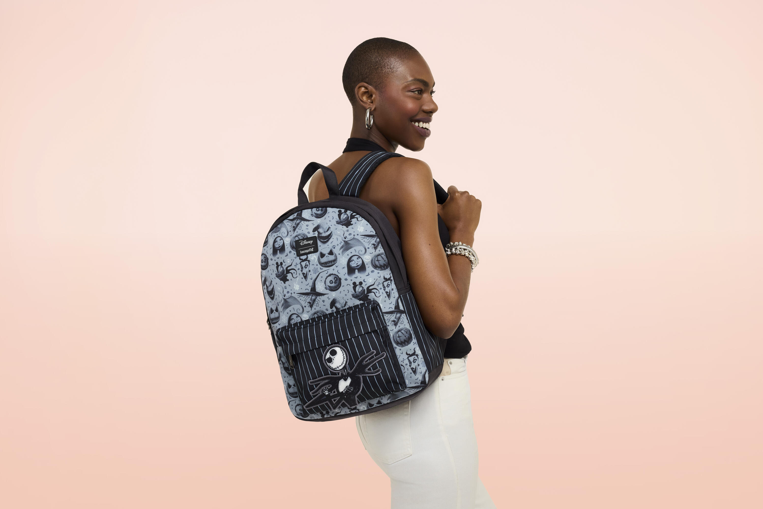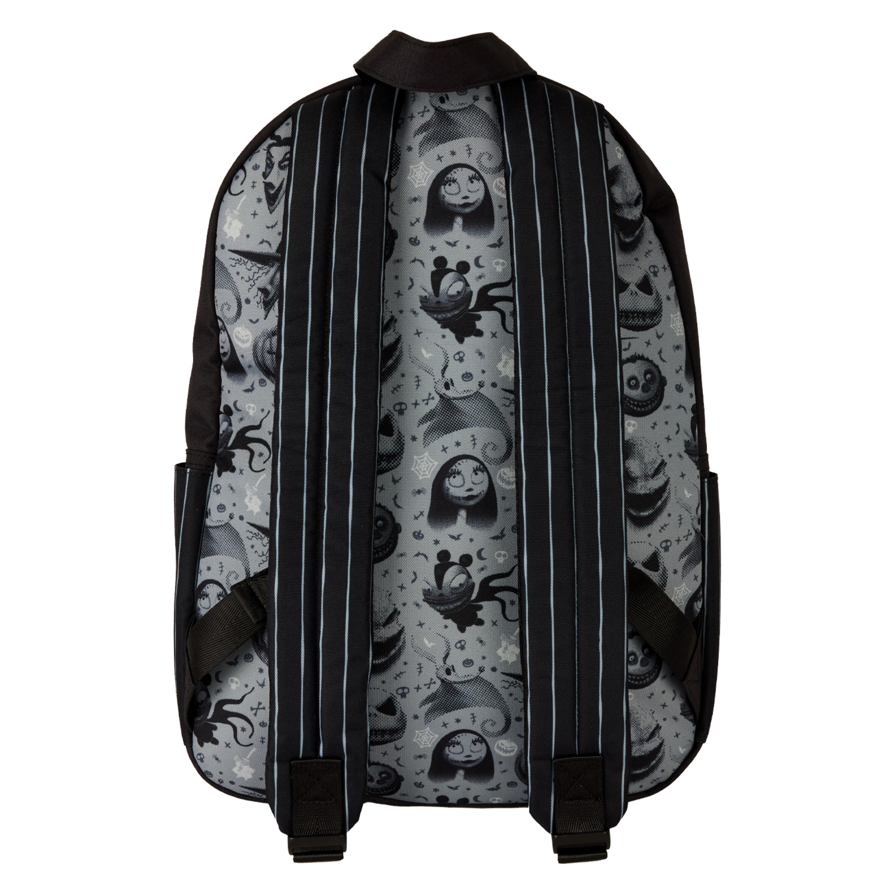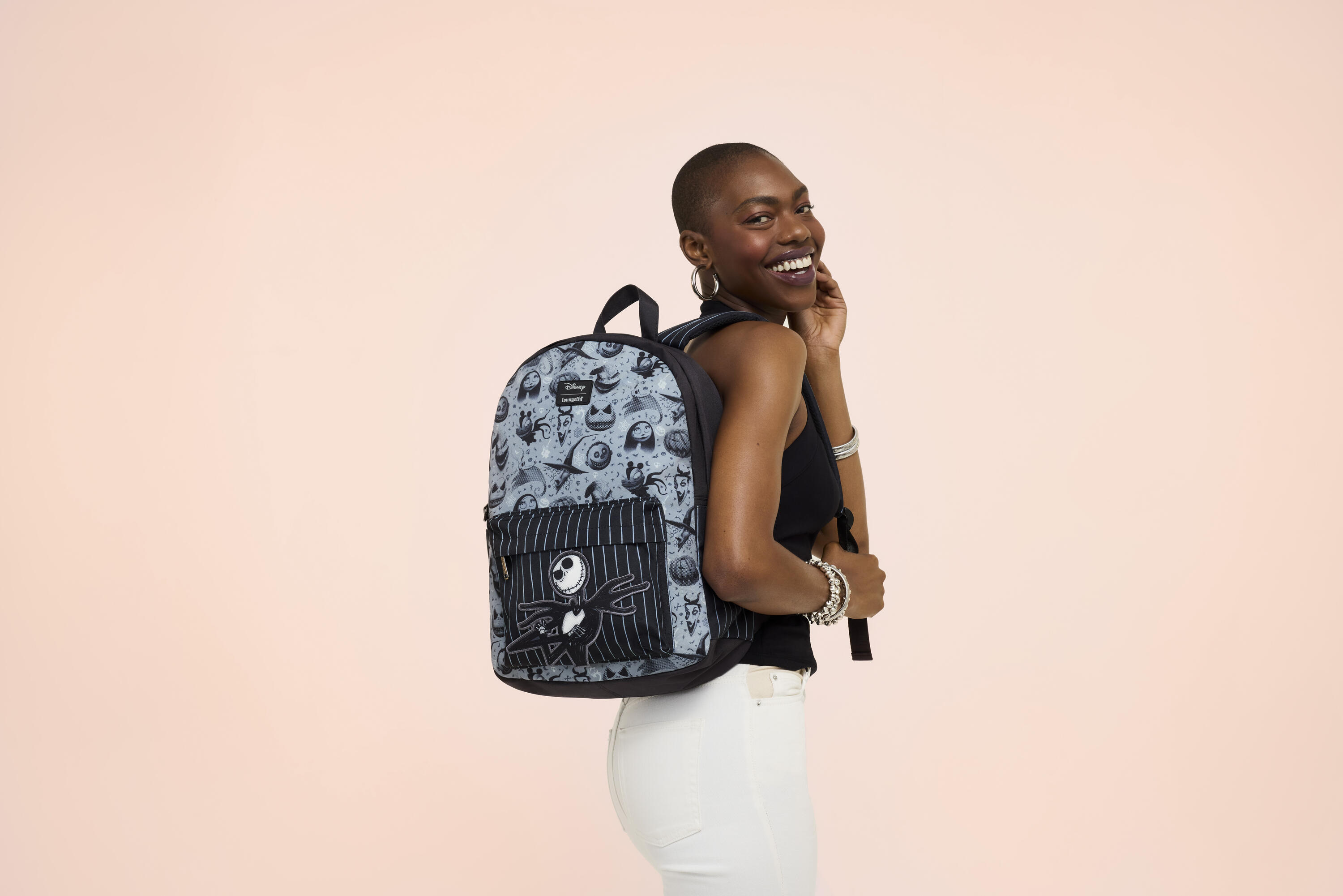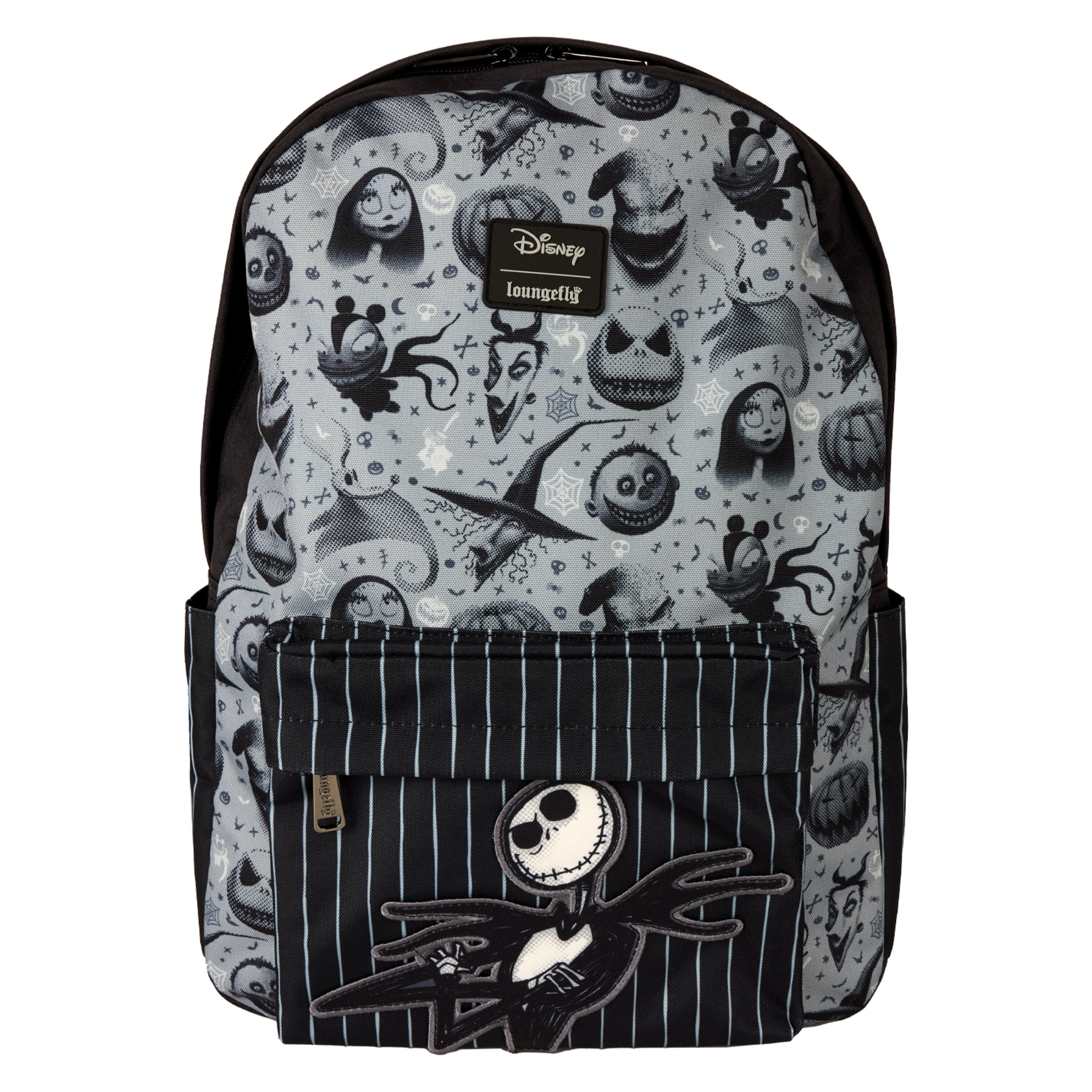 Deze grote rugzak is een eerbetoon aan ieders favoriete Pompoenkoning! Je vindt Jack Skellington op het voorvak tegen een zwart-wit gestreepte achtergrond. Over de hele voorkant van de tas vind je afbeeldingen van een aantal van je favoriete personages uit Halloween Town, waaronder Jack, Sally, Oogie Boogie en meer!