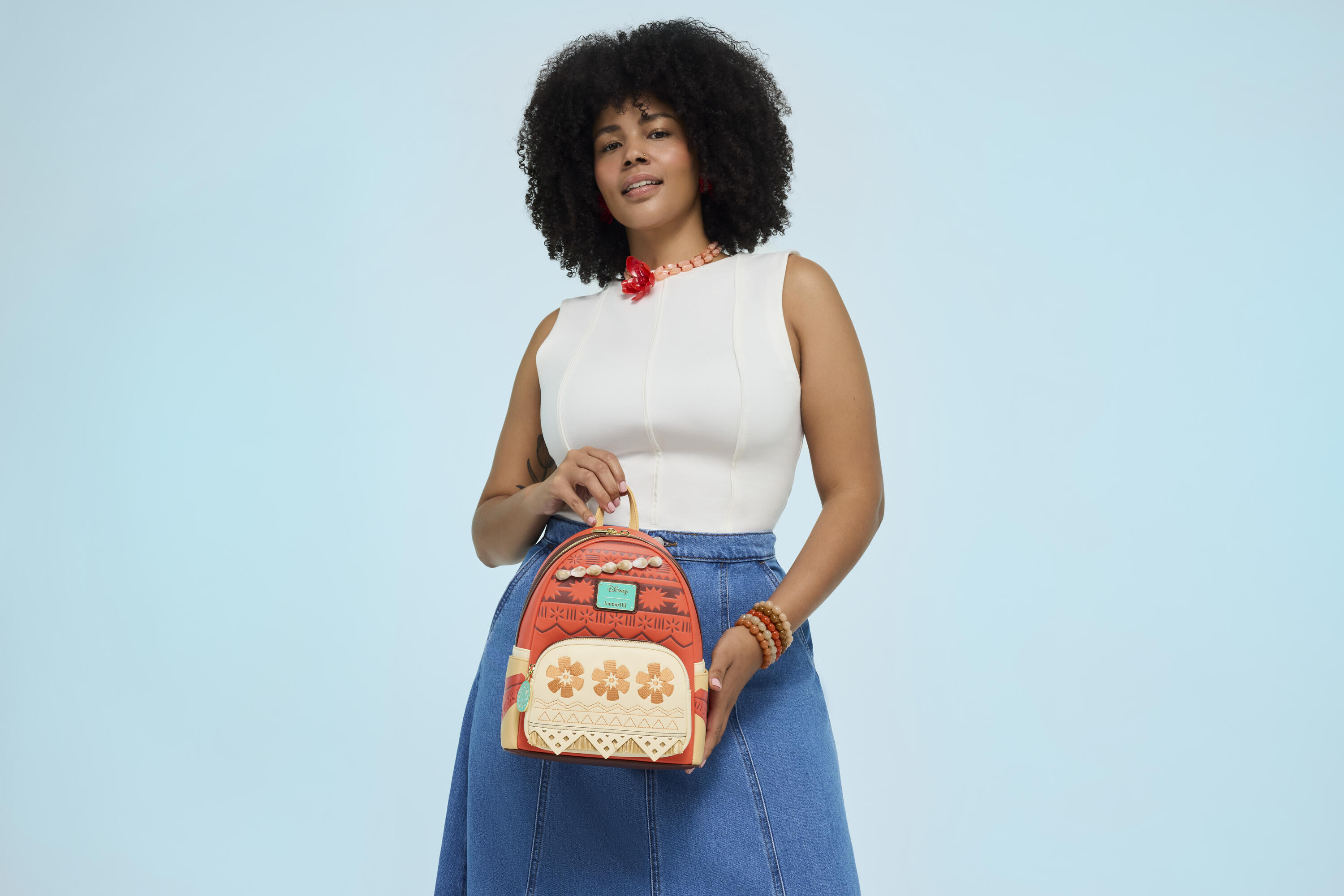 Deze tas is voorzien van Vaiana's outfit, compleet met geborduurde details, echte puka-schelpen, reliëf en jute franje! Het is het perfecte accessoire voor wanneer het avontuur je roept!
