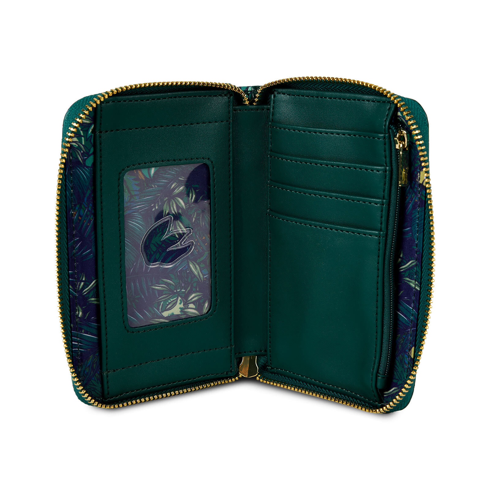 Afmetingen: 15,24 x 3,81 x 10,16 cm. Synthetisch leer (polyurethaan). Zip . Lenzichtig details. Applicaties, imitatiekrokodillenleer en bedrukte details. Vier kaartvakken en één transparant ID-vak. Bijpassende binnenvoering.