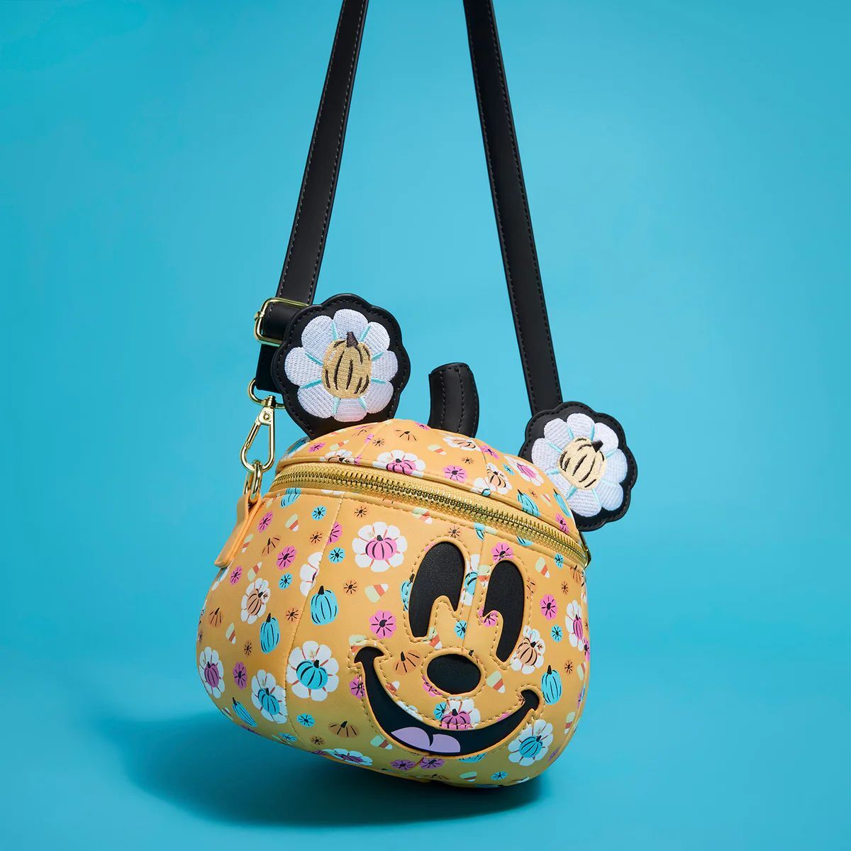Een figuurlijke pompoen is dé trend voor het griezelseizoen! Deze tas lijkt op Mickey Muis in de vorm van een pompoen. Je vindt er een all-over print van pompoenen en snoepmaïs. Mickey lacht vanaf de voorkant van de tas. Zijn 3D-oren hebben pompoenen in het midden! Deze tas wil je zeker in het donker tevoorschijn halen, want het gezichtje licht op!
