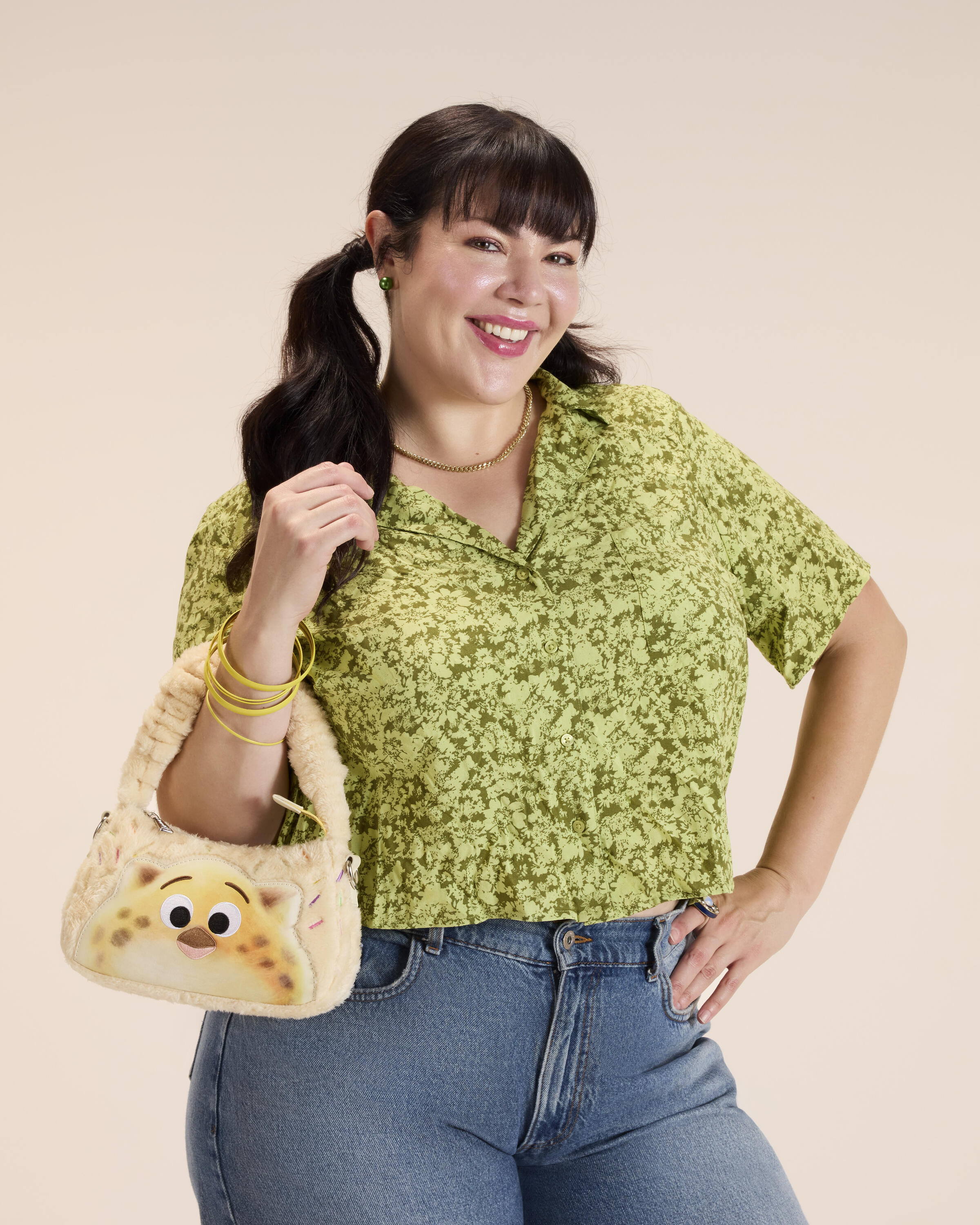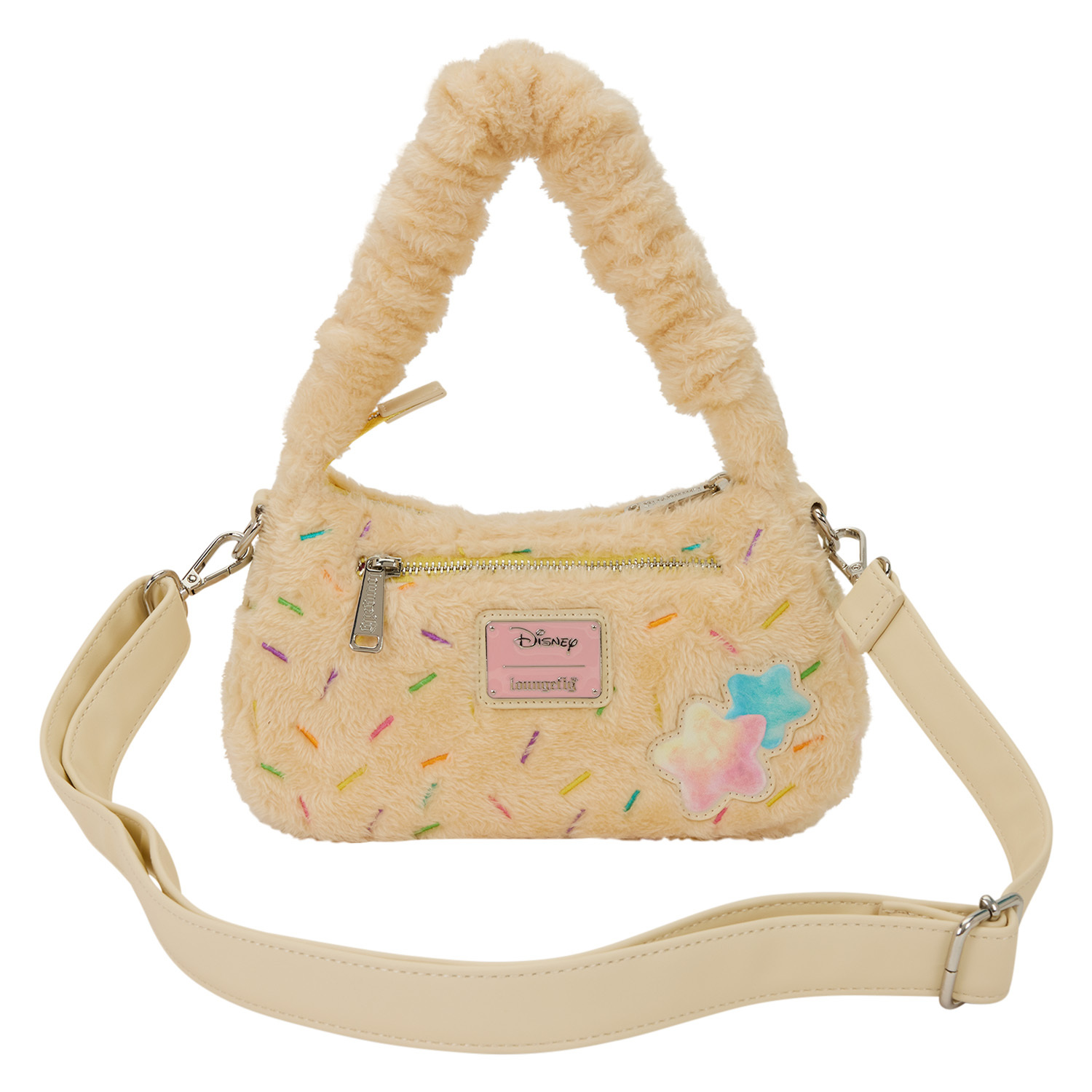 Deze superschattige schoudertas is helemaal versierd met geborduurde sprinkles. Op de voorkant zie je agent Clawhauser, die eruitziet alsof hij van suikerspin is gemaakt! Er zit zelfs imitatiebont op voor extra textuur. Deze tas heeft een scrunchie-achtig handvat en een schouderband, zodat je hem kunt dragen zoals je wilt!