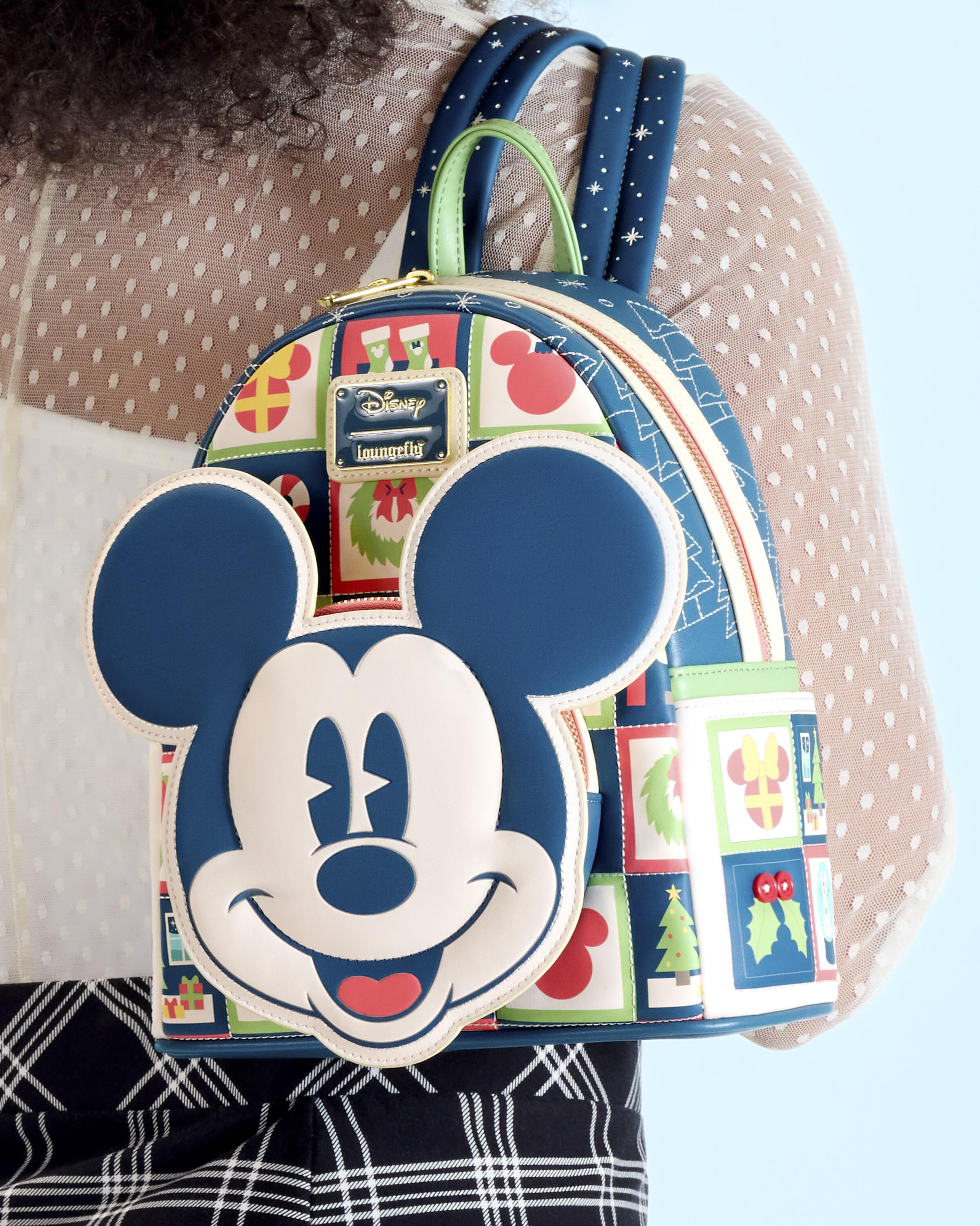 Deze mini rugzak is het perfecte feestelijke accessoire voor de feestdagen. Op de voor- en zijvakken vind je een gewatteerd reliëf van verschillende feestsymbolen, waaronder hulst, kransen, kousen boven een vuur en een Mickey-vormig ornament! Het voorvak heeft een applicatie van Mickey Muis! De bovenkant van de tas is materiaal met afbeeldingen van groenblijvende bomen en een geborduurde sterrenhemel op de schouderbanden!