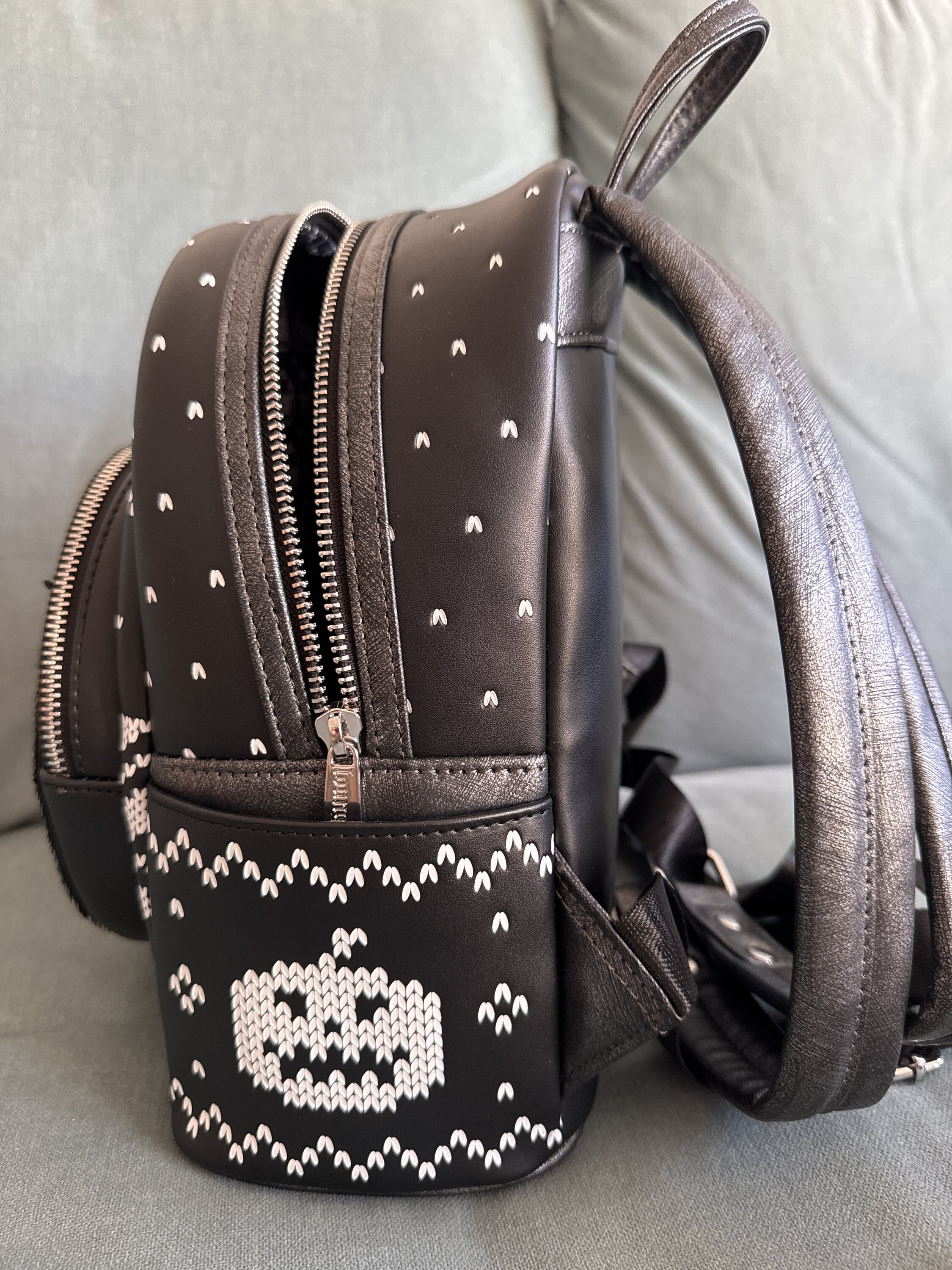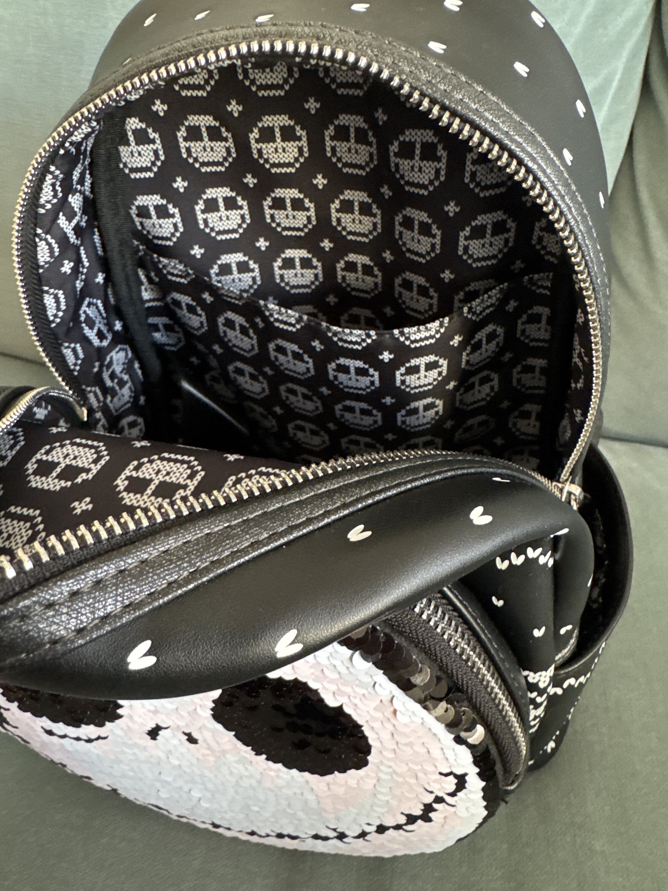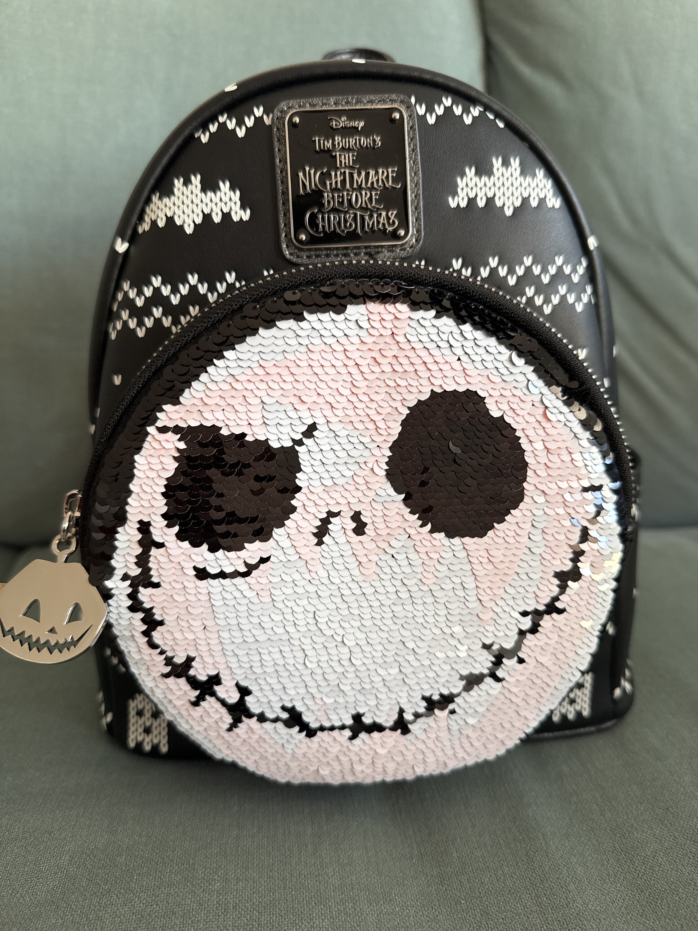 De tas heeft een ontwerp dat lijkt op een kersttrui, met pompoen- en spookmotieven. Het voorvak is versierd met omkeerbare pailletten. Vanuit het ene perspectief zie je Jack Skellington en vanuit het andere perspectief een pompoen! Dit is een superleuke tas voor iedereen die van alles houdt wat met The Nightmare Before Christmas.