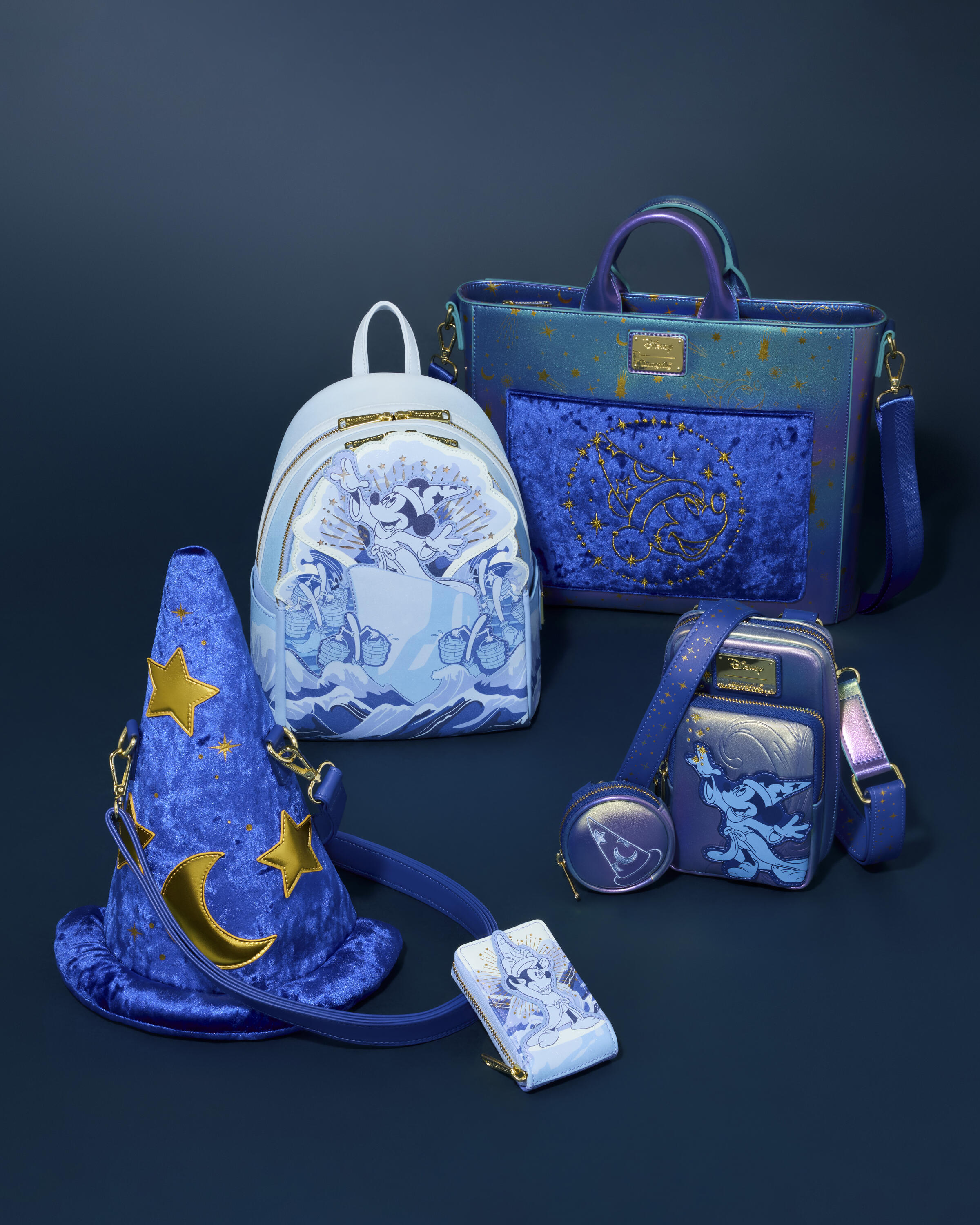 Deze crossbodytas is versierd met een reliëfprint van Tovenaar Mickey op de voorkant. Hij tovert en de glitters boven hem zijn geborduurd. Het blauw iriserende materiaal maakt deze tas echt opvallend. Aan de band zit een afneembaar muntenzakje met Mickey's tovenaarshoed!