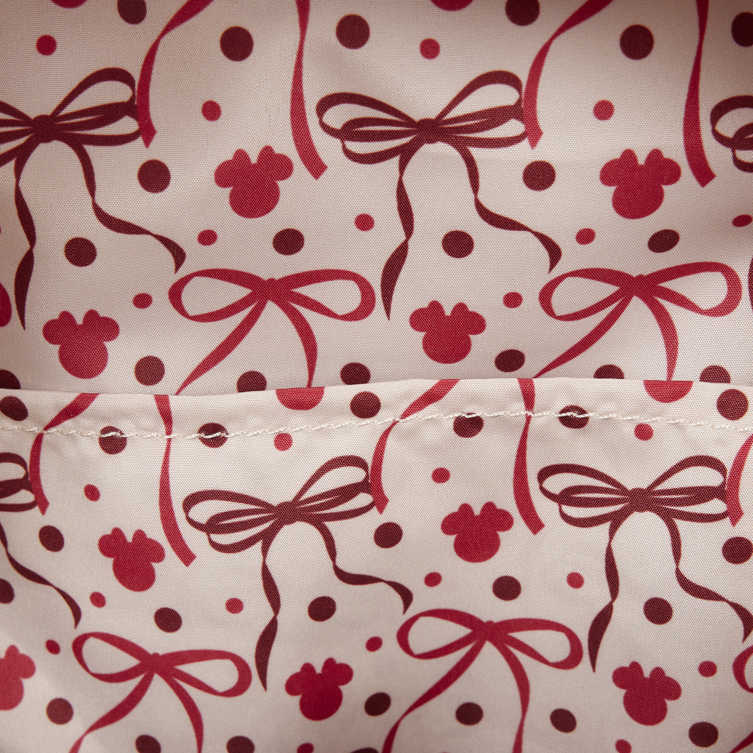 Deze mini rugzak is crèmekleurig en rood. Op het voorvak vind je reliëfstippen. Over de rest van de tas zie je silhouetten van Minnie Muis . Satijnen lintjes maken de zijvakken en de oortjes met 3D-applicatie extra schattig. Er zit ook een rode strik met witte stippen tussen de oortjes! Je vindt ook satijnen details op de bandjes.