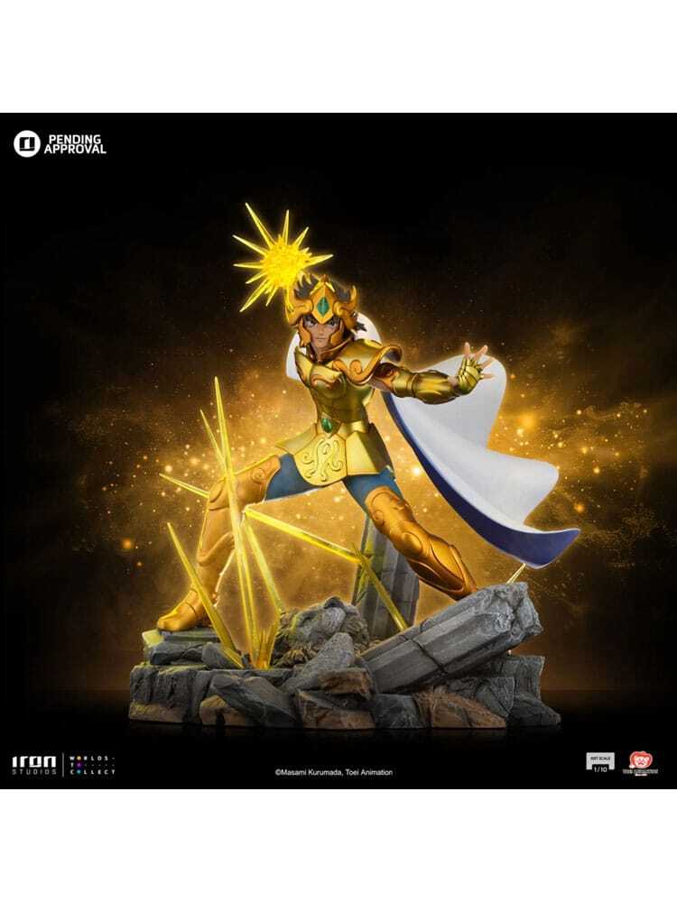 Dit beeld is officieel gelicentieerd en wordt in een gelimiteerde oplage geproduceerd. De sokkel is voorzien van gedetailleerde details die trouw zijn aan de originele referenties van de serie, waardoor de legendarische Gouden Heilige Leeuw tot leven komt.