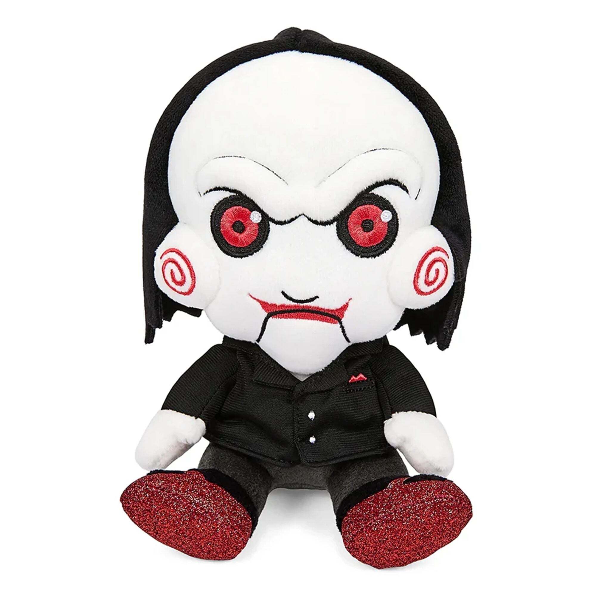 Wil je een spelletje spelen? Test je overlevingsvaardigheden met Billy the Puppet! Jigsaw's griezelige kleine boodschapper uit de Saw-franchise is nog nooit zo schattig geweest. Je wilt hem zo hard mogelijk vasthouden! De Billy the Puppet-knuffel is 20 cm groot en draagt zijn iconische kostuum. (En ook nog eens met glitterschoentjes!) Niet geschikt voor kinderen jonger dan 3 jaar (verstikkingsgevaar door kleine onderdelen). Hoogte: 20 cm