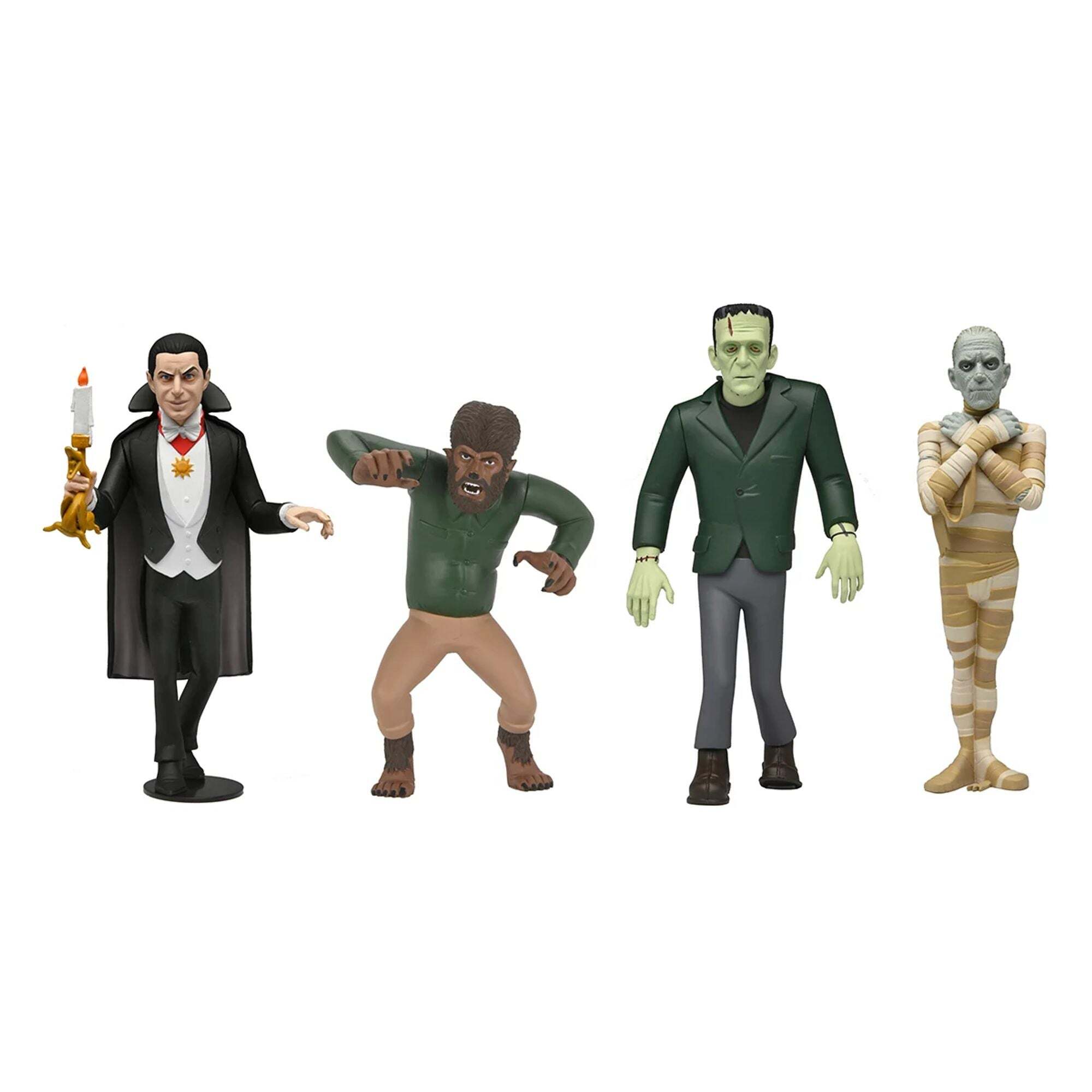 Duik in onze horrorcollectie met deze schattige monstertjes! Fans van de beroemde monsters zullen dol zijn op deze serie beeldjes, waaronder de Wolfman, de mummie, Dracula en het monster van Frankenstein! Elk beeldje is ongeveer 15 cm hoog en wordt geleverd in een nieuwe verpakking met een extra gestanste achtergrond. Hoogte: 15 cm