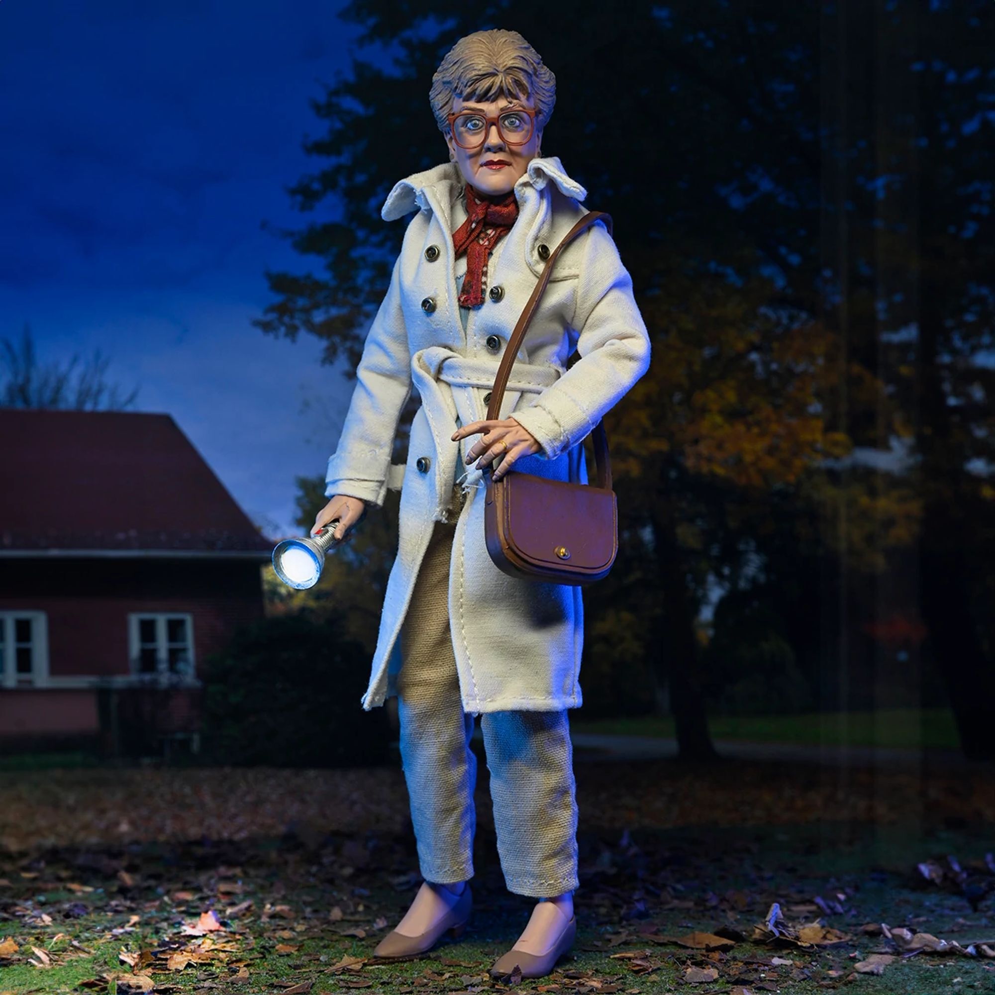 We willen je niet alarmeren, maar er is iets heel sinisters aan de hand! Gelukkig kun je, mocht er iets gebeuren in Cabot Cove, altijd rekenen op Jessica Fletcher om het tot op de bodem uit te zoeken. De iconische mysterie /amateurdetective uit Murder, She Wrote is nu een NECA-figuur die klaarstaat om samen met jou misdaden op te lossen! Deze volledig beweegbare figuur van 20 cm is gekleed in zachte, op maat gemaakte kleding, vergelijkbaar met de iconische speelgoedlijnen uit de jaren 70. Ze wordt geleverd met verwisselbare gezichtsuitdrukkingen, een verwisselbare trui, jas, sjaal, tas, zaklamp, typemachine en haar boek, The Corpse Danced at Midnight! Verpakt in een vensterdoos. Hoogte: 8 inch